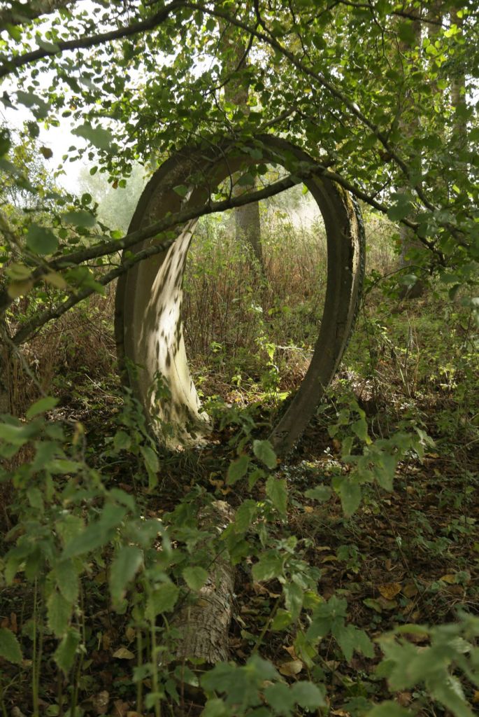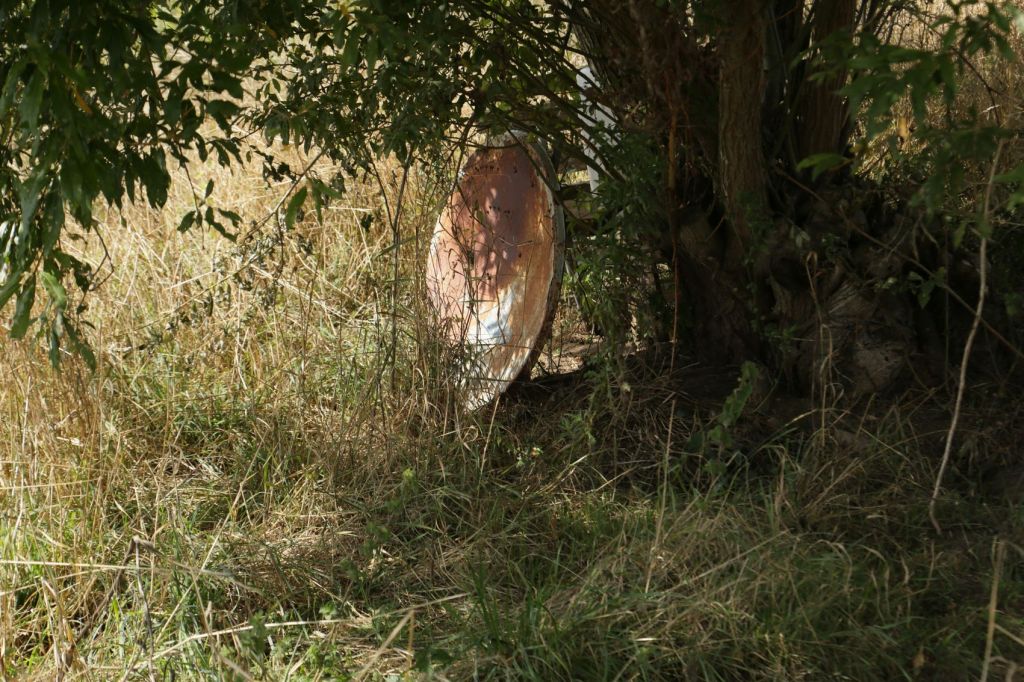 Le film avance, le paysage change ; les espaces domestiqués, cultivés, reprennent le dessus ; la traversée d’un petit bois confirme la rupture : les marques imprimées des roues du tracteur dans la boue du chemin, et comme un avertissement, des objets étranges qui semblent me regarder passer… L’amorce d’un changement de monde.