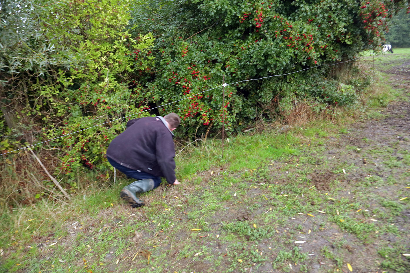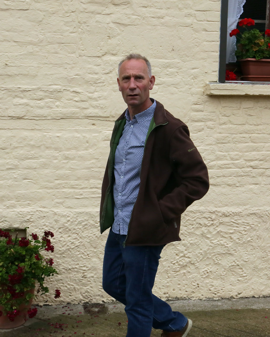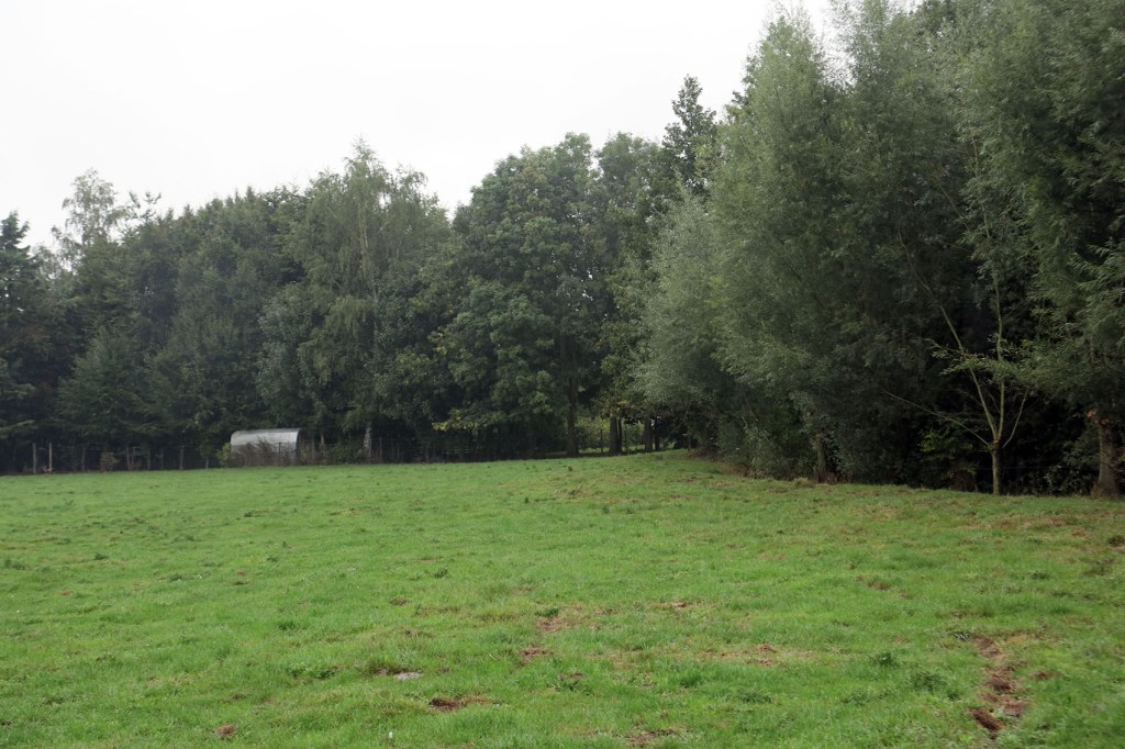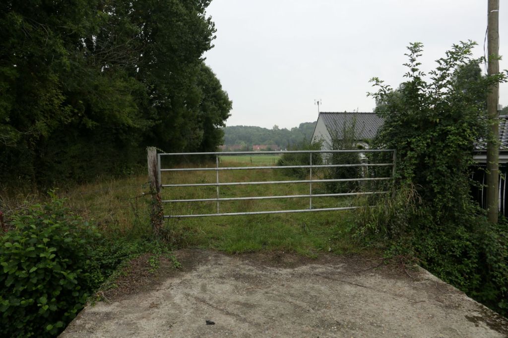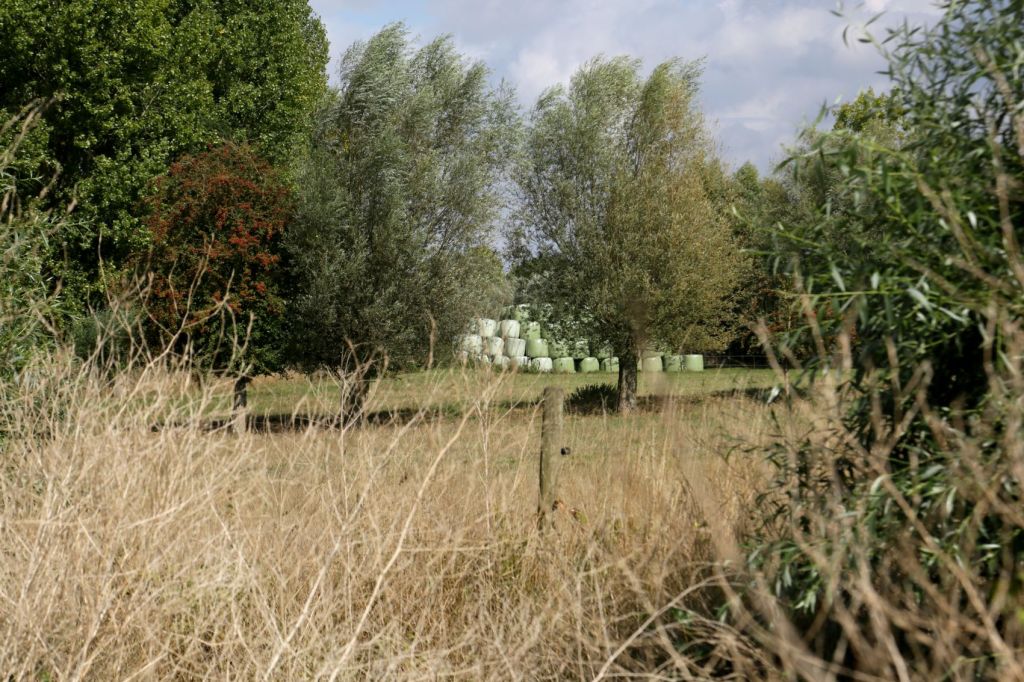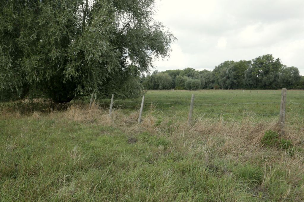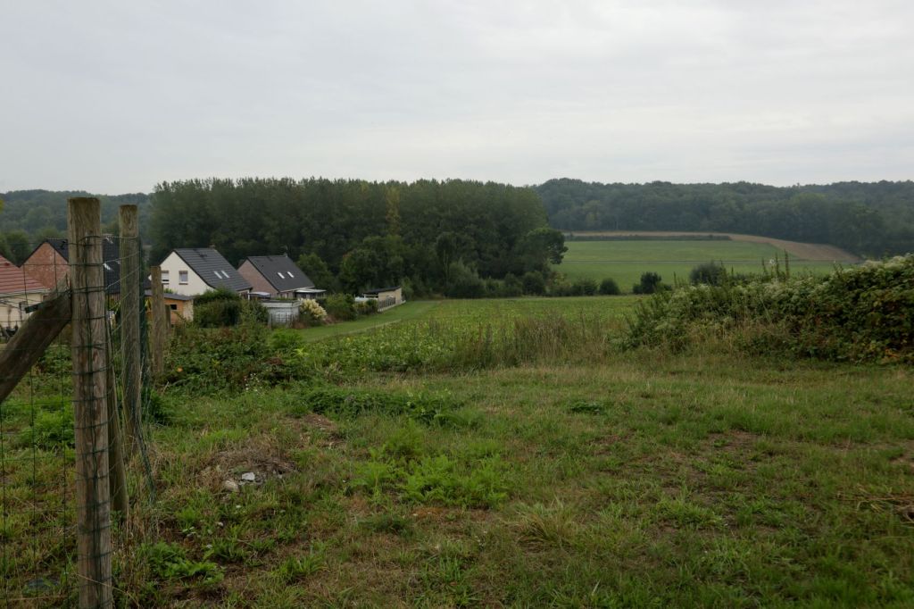 Rendez-vous avec monsieur Verwaerde, maire de Quernes. Il est 15h10, nous prenons la direction des pâtures à Bernard Labitte, au nord du village… nous tournons rue du Nocquet jusqu’à la barrière à l’entrée du pré. Le temps est couvert, plutôt à la pluie, dommage.