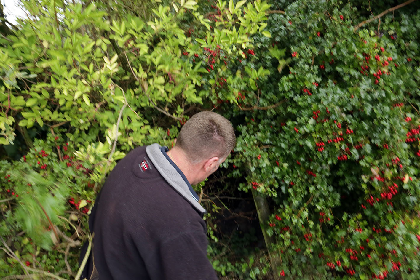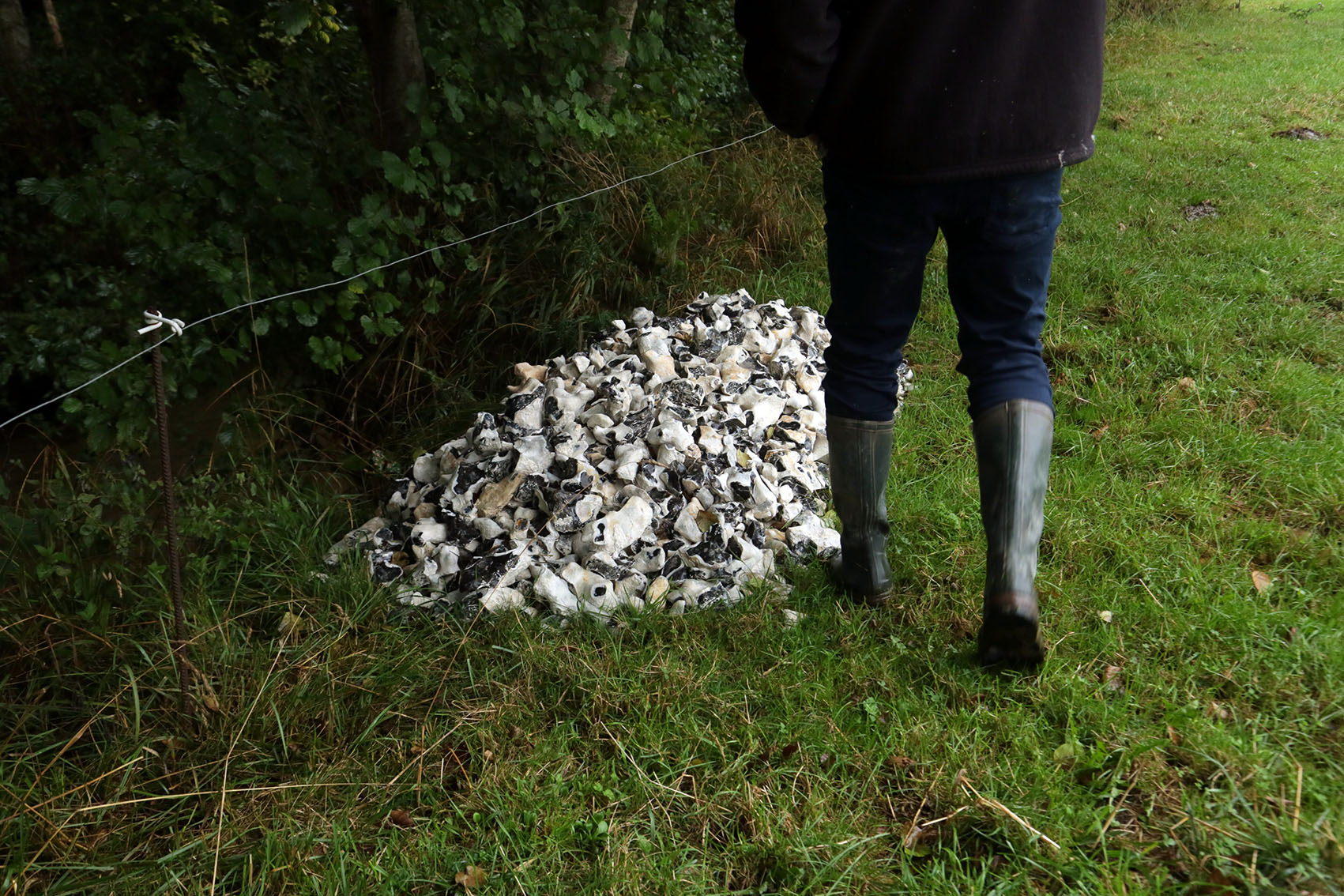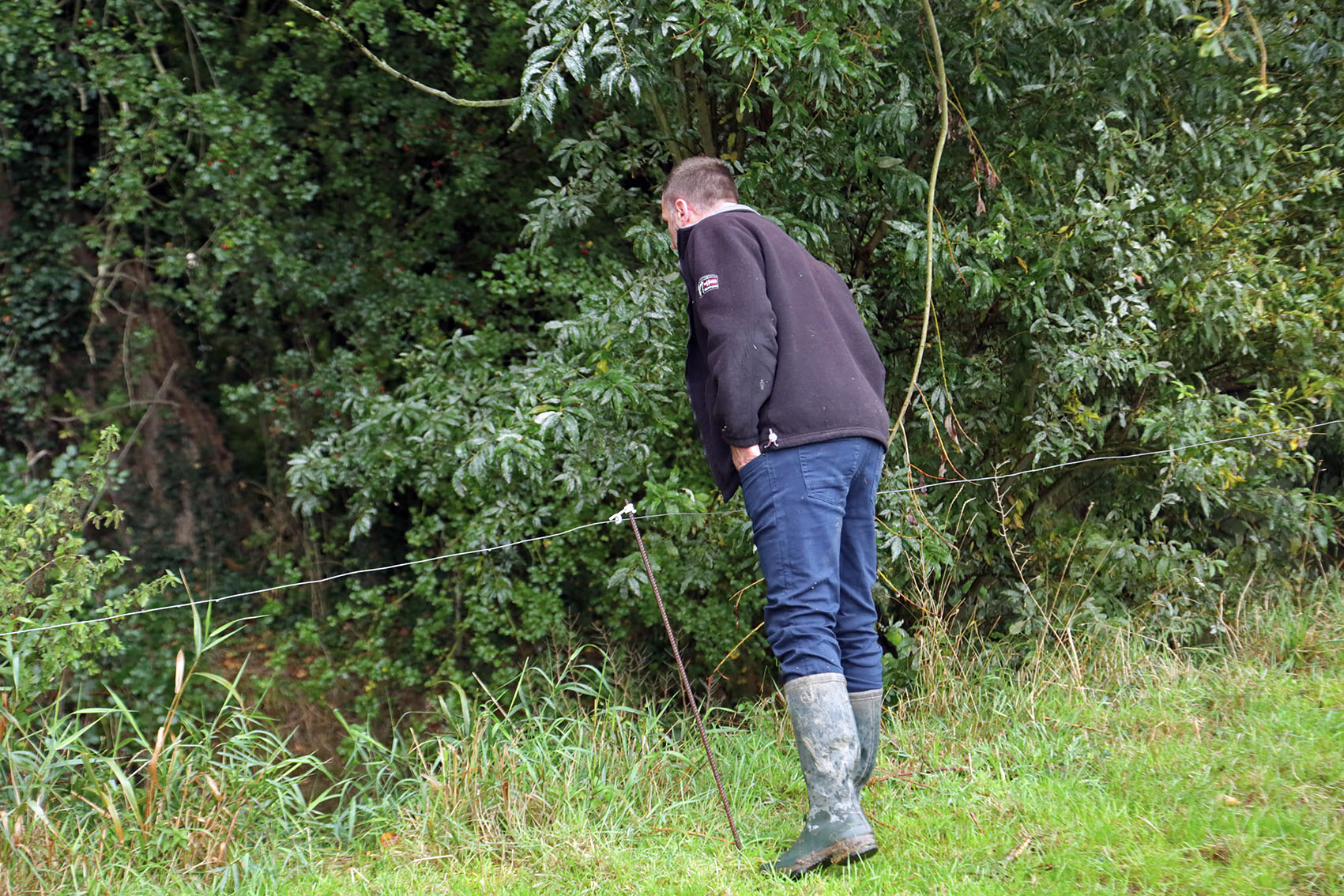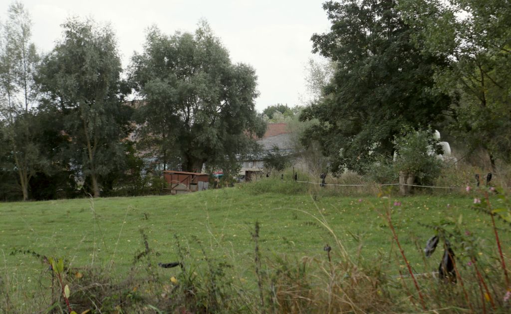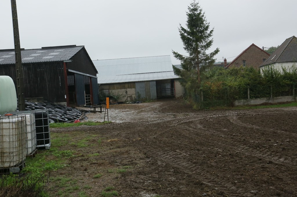 Rendez-vous avec monsieur Verwaerde, maire de Quernes. Il est 15h10, nous prenons la direction des pâtures à Bernard Labitte, au nord du village… nous tournons rue du Nocquet jusqu’à la barrière à l’entrée du pré. Le temps est couvert, plutôt à la pluie, dommage.