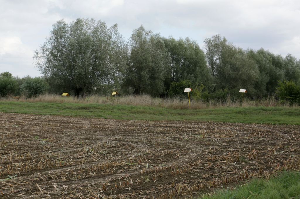 Approcher du pont, poursuivre de l’autre côté, en face, un chemin agricole longe le cours d’eau, un champ de maïs borde la coulée, les tiges sont très hautes, visiblement les plantes n’ont pas souffert du manque d’eau, sont mûres pour la récoltes. Sur notre gauche, je sais que la Lacquette est là, mais masquée par la végétation de berge. Pas d’arbres de haut jets encore mais une haie bien fournie, dominée par des ormes en devenir, une promesse qui n’aboutira pas si la graphiose sévit toujours.