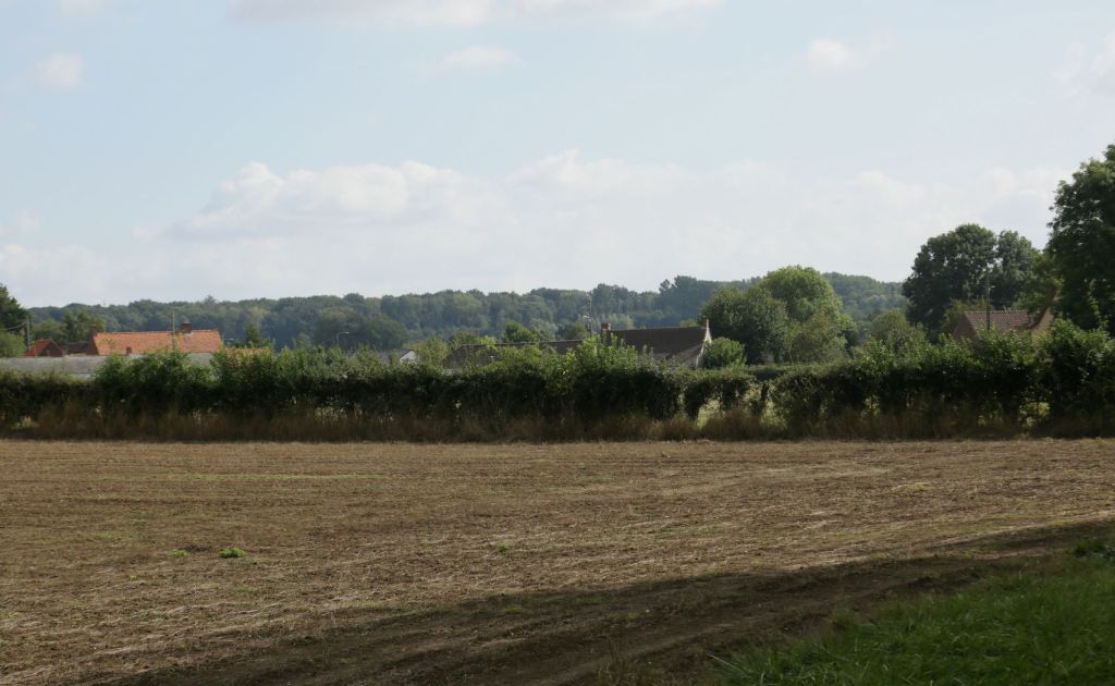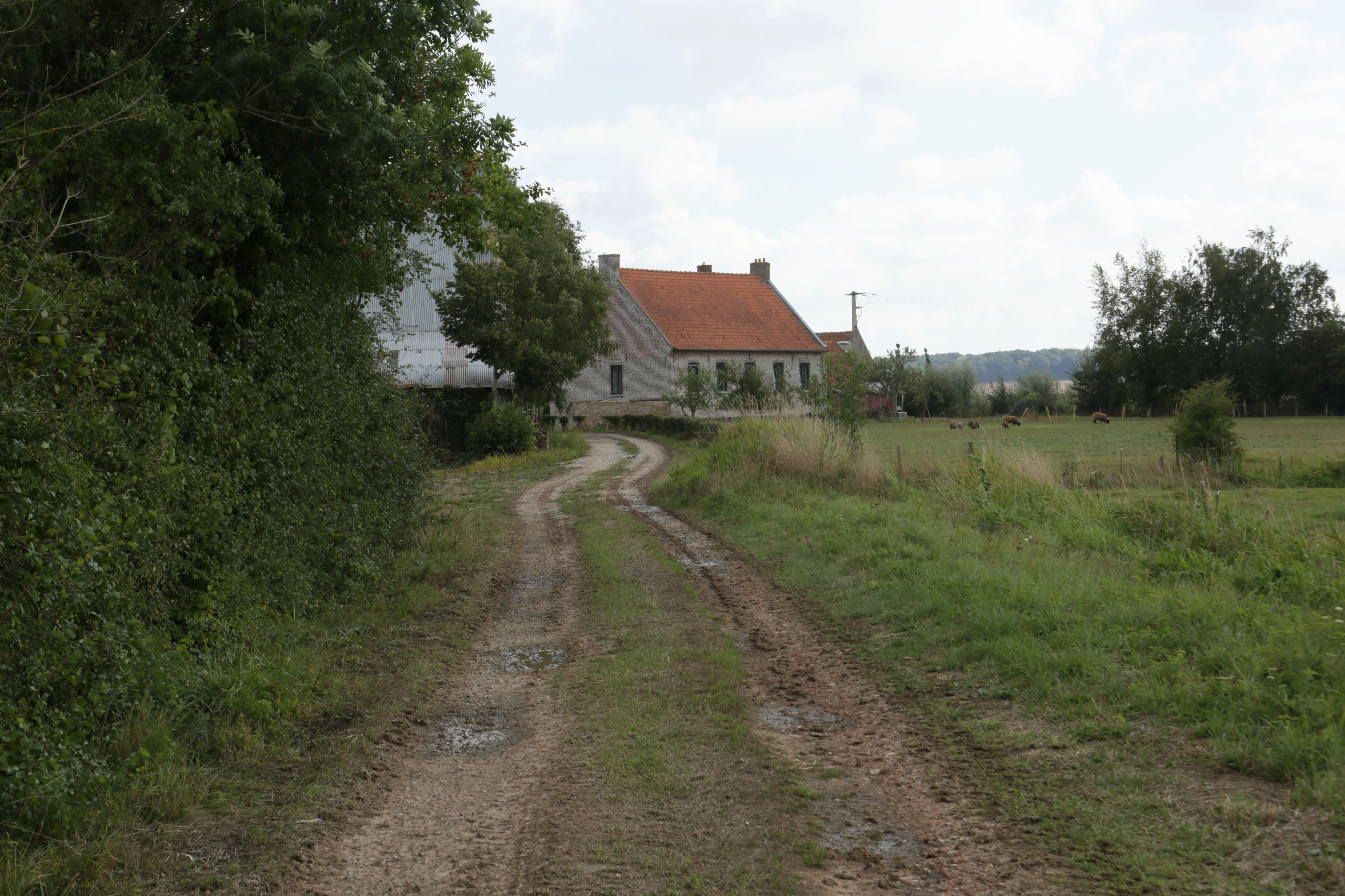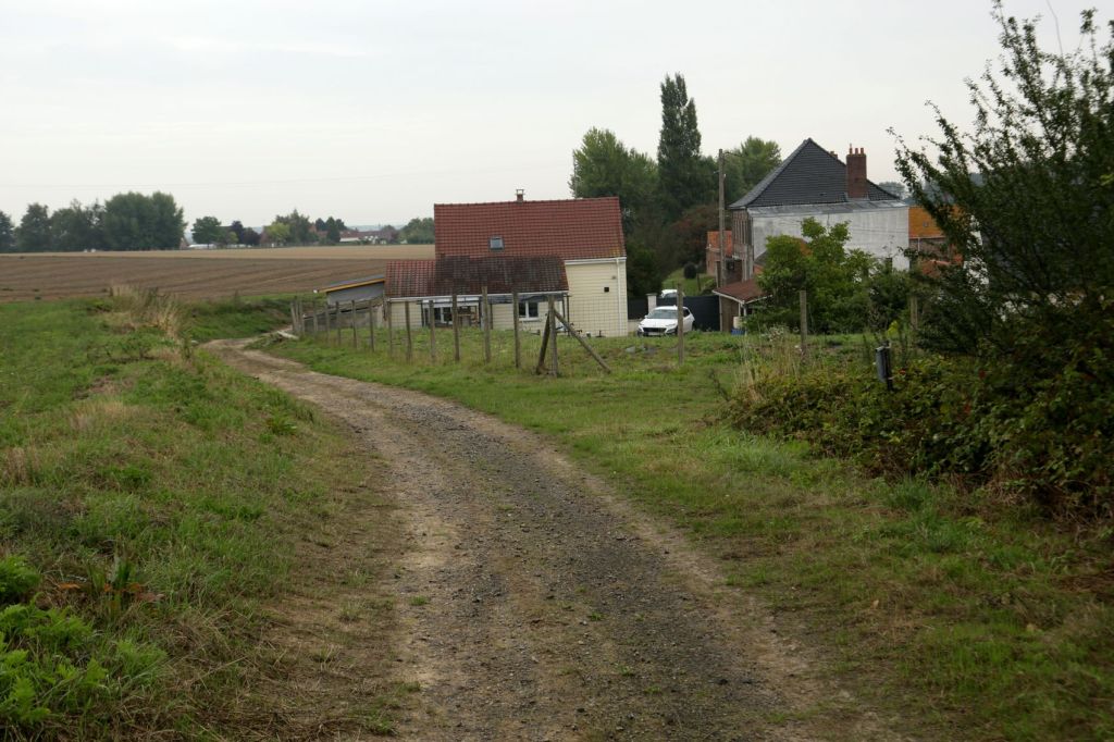 Je me prends à caresser l’espoir de faire une boucle en regagnant Witternesse par la ferme de Mongré, ou même par l’Abbaye de Saint-André… et d’emprunter un chemin de traverse dans « le Beauroy » (un lieudit des champs) jusqu’à une voie qui me ramène dans le bourg de Witternesse.
