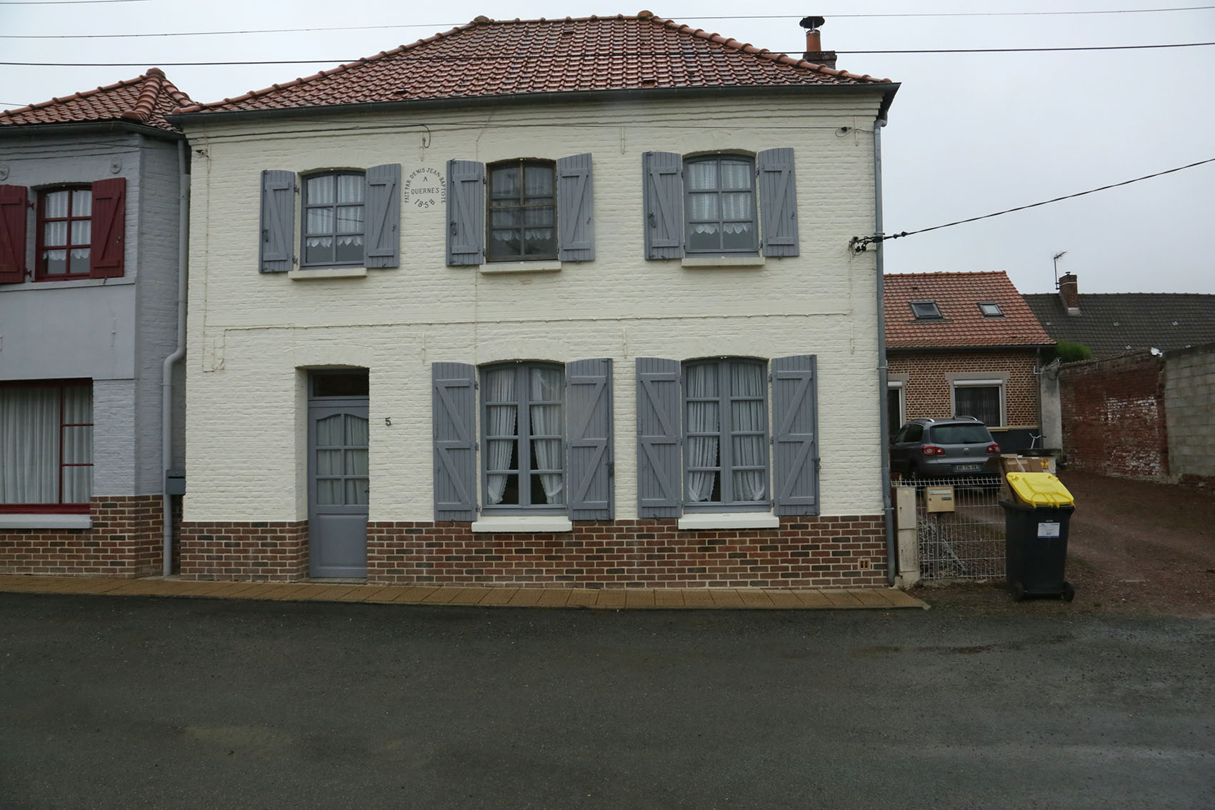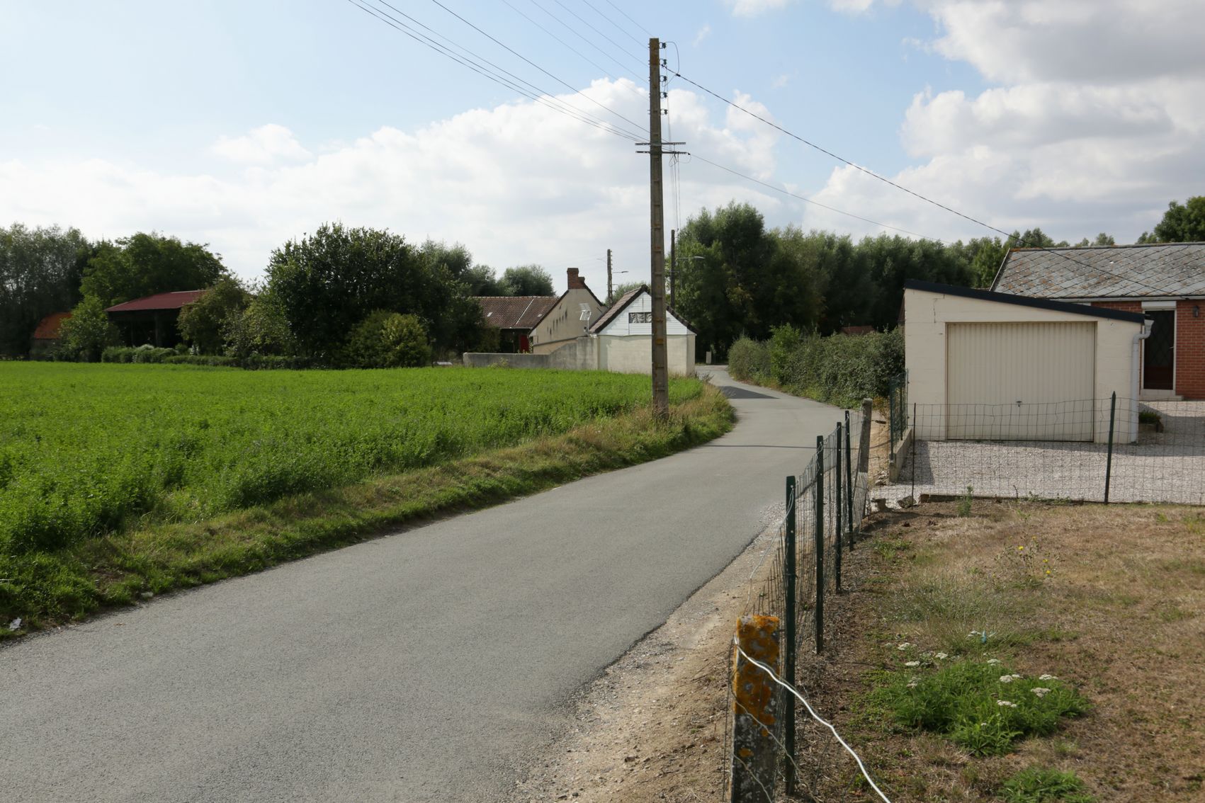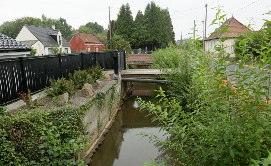 La rue distribue les accès aux habitations, à gauche le cours d’eau est ponctué de passerelles d’accès, cette gestion au plus près de l’eau me surprend toujours dans le Pas-de-Calais, l’eau est canalisée de longue date, domestique.