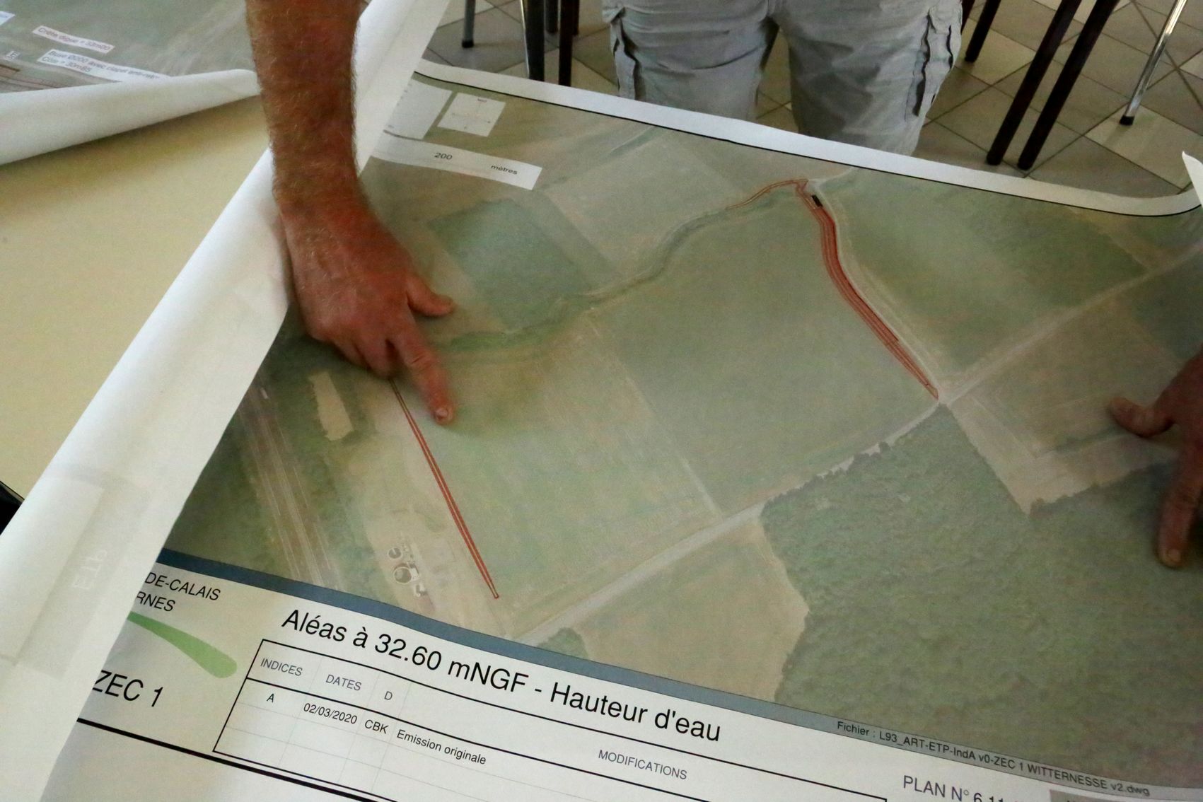 Et Patrick de continuer : une entrave à l’écoulement entraînerait des complications, l’eau baisserait difficilement. Il évoque un terrain en vente se trouvant en limite de commune, pour moitié sur Quernes et l’autre, sur Witternesse. Le fossé passe en milieu de parcelle, il est la limite des communes, seul exutoire permettant de faire partir les eaux accumulées en cas d’inondation, comme celle de novembre 2021.