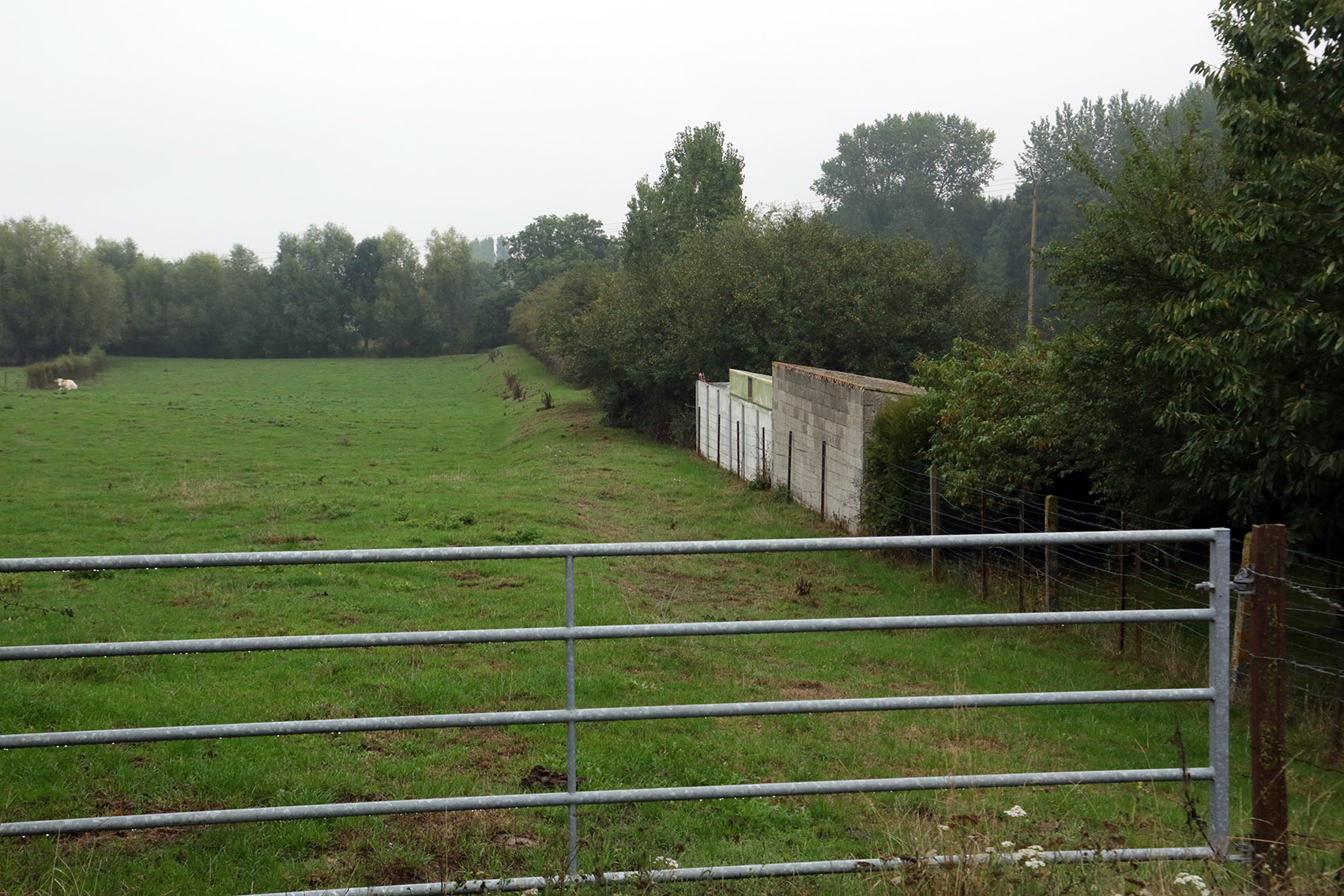 La ferme de Mongré pourrait-elle devenir un nouveau point d’accès avant l’Abbaye de Saint-André ? Semblerait que je puisse aussi longer la Lacquette à la sortie de Witternesse, après la dernière maison, en remontant un champ pour ensuite longer la haie ; elle borde le cours d’eau.