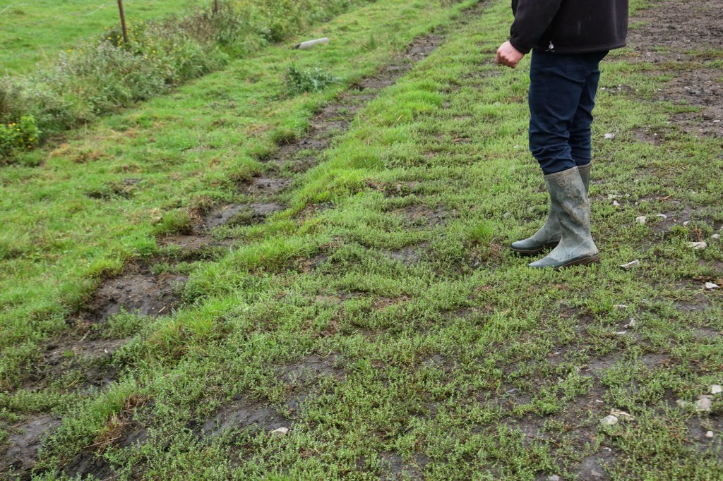 Il s’avance, me montre : « le sol fait des vagues, les vaches ont beau piétiner, le sol résiste ». L’empreinte des anciennes traverses est encore bien visible…