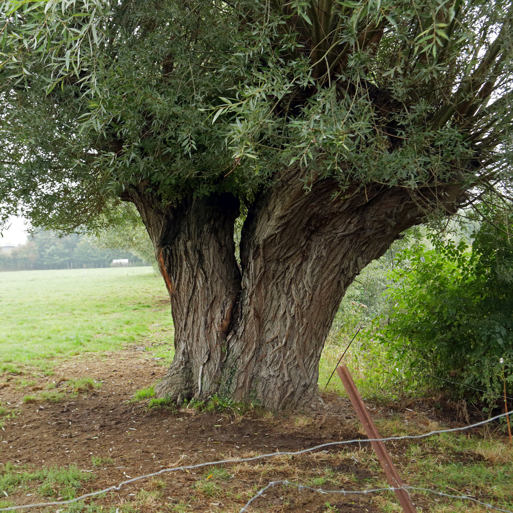 Je pose des questions sur l’état avancé de ces saules, creux, magnifiques. Me répond que par ici, ils restent entretenus, les fermiers coupent les branches tous les deux trois ans, pour le feu…