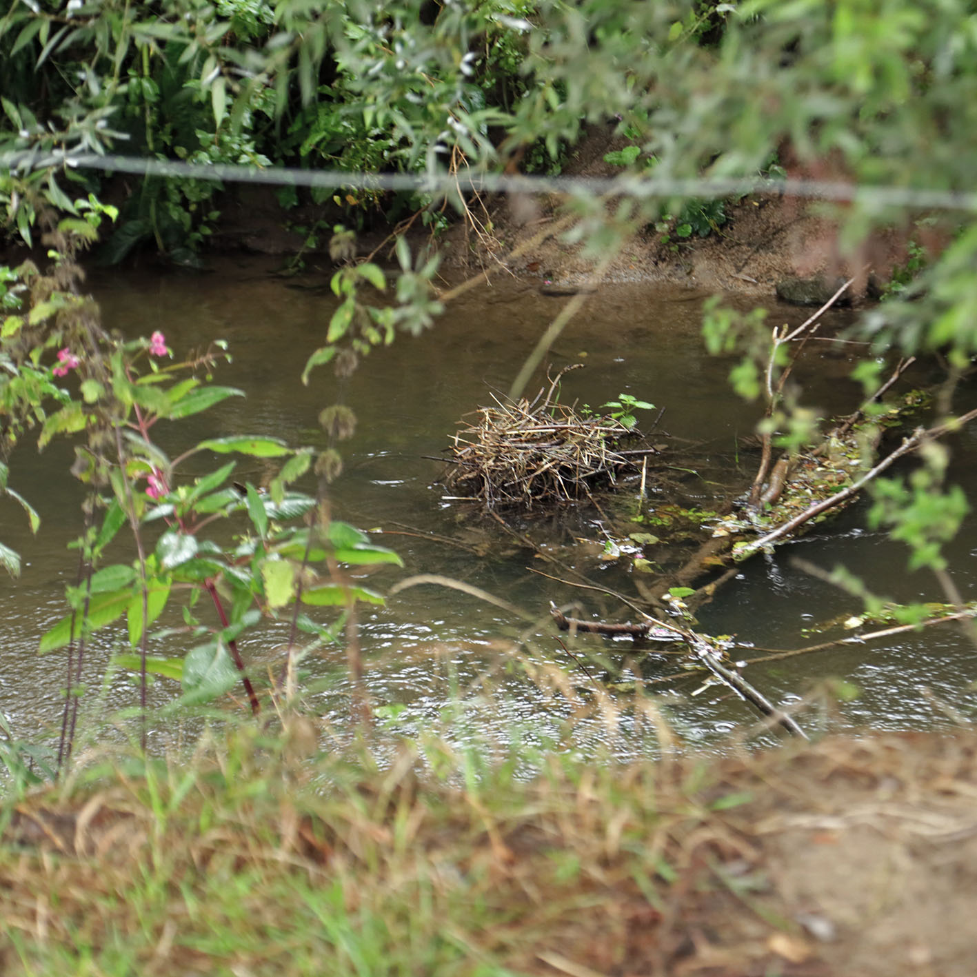 En approchant l’autoroute, le son produit par le passage des véhicules trouble notre perception : à droite, un bosquet crée une ambiance charmeuse, bucolique : la rivière s’y faufile et finit par échapper à la vue.