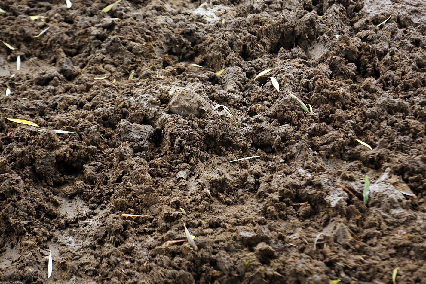 Ça vire à la pluie… L’eau poursuit son travail d’humidification du mélange qui, consciencieusement piétiné, m’enrobe bien les brodequins… Mouais, indéniablement, les bottes eurent été préférable !