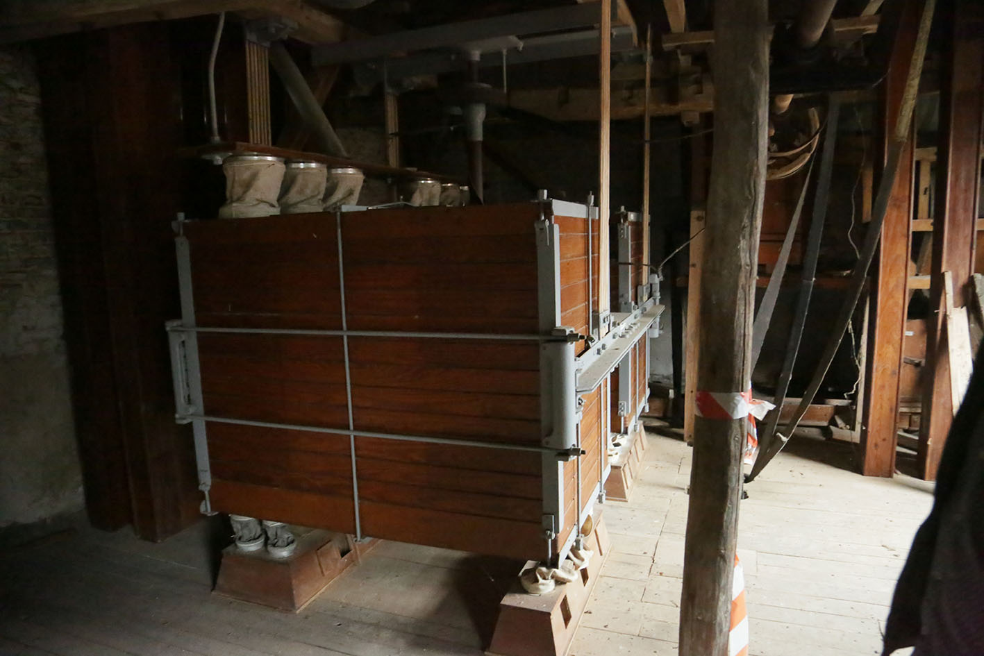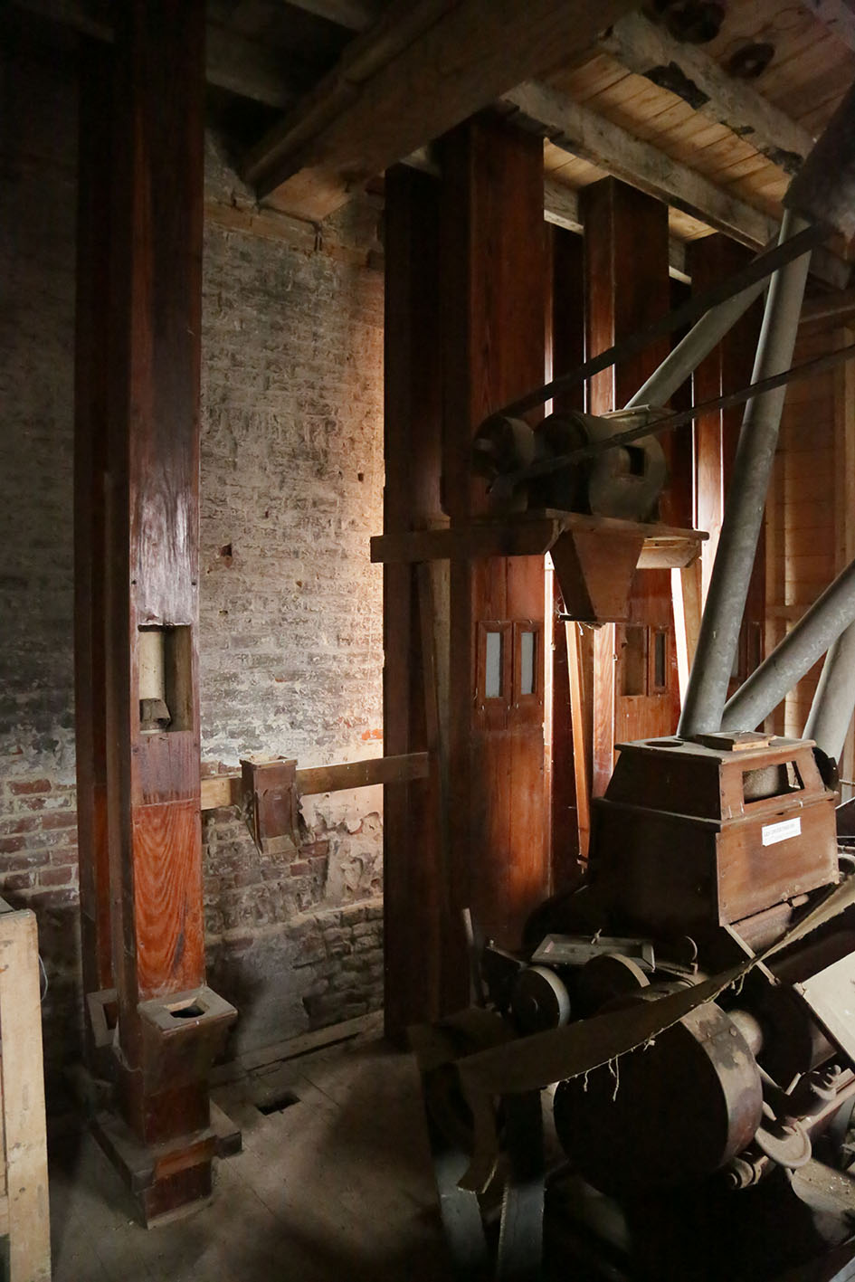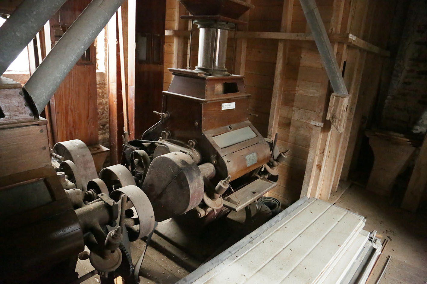Ces mécanismes ont été renouvelés et améliorés à plusieurs moments de la vie du moulin ; en dernier instance, la machine vue au 2ème étage, le « planchister » ou tamiseur, de la marque suisse Buhler, qui a été importée en 1932.