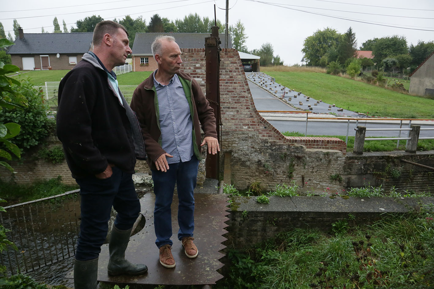 Avec Patrick, ils se mettent à parler de la source dans la rue… Bernard ajoute : « on a eu un printemps humide, près de 80 cm d’eau chez nous ». C’est presque à chaque printemps, c’est récurrent.