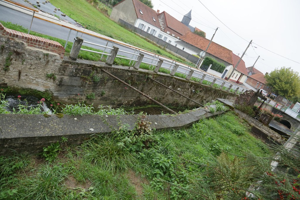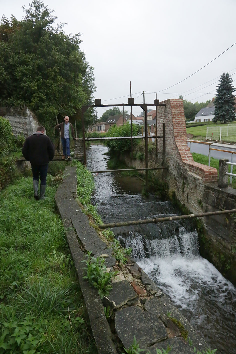 Suivre la rivière à Quernes m’a amené à faire une lecture inattendue des lieux, en lien avec des contraintes qui lui ont été imposées, comme sa dérivation ou rectification historique pour l’alimentation du moulin. C’est un des paramètres qui conditionne aujourd’hui certains états de l’eau dans le village, son tracé, peut-être même une organisation du village.