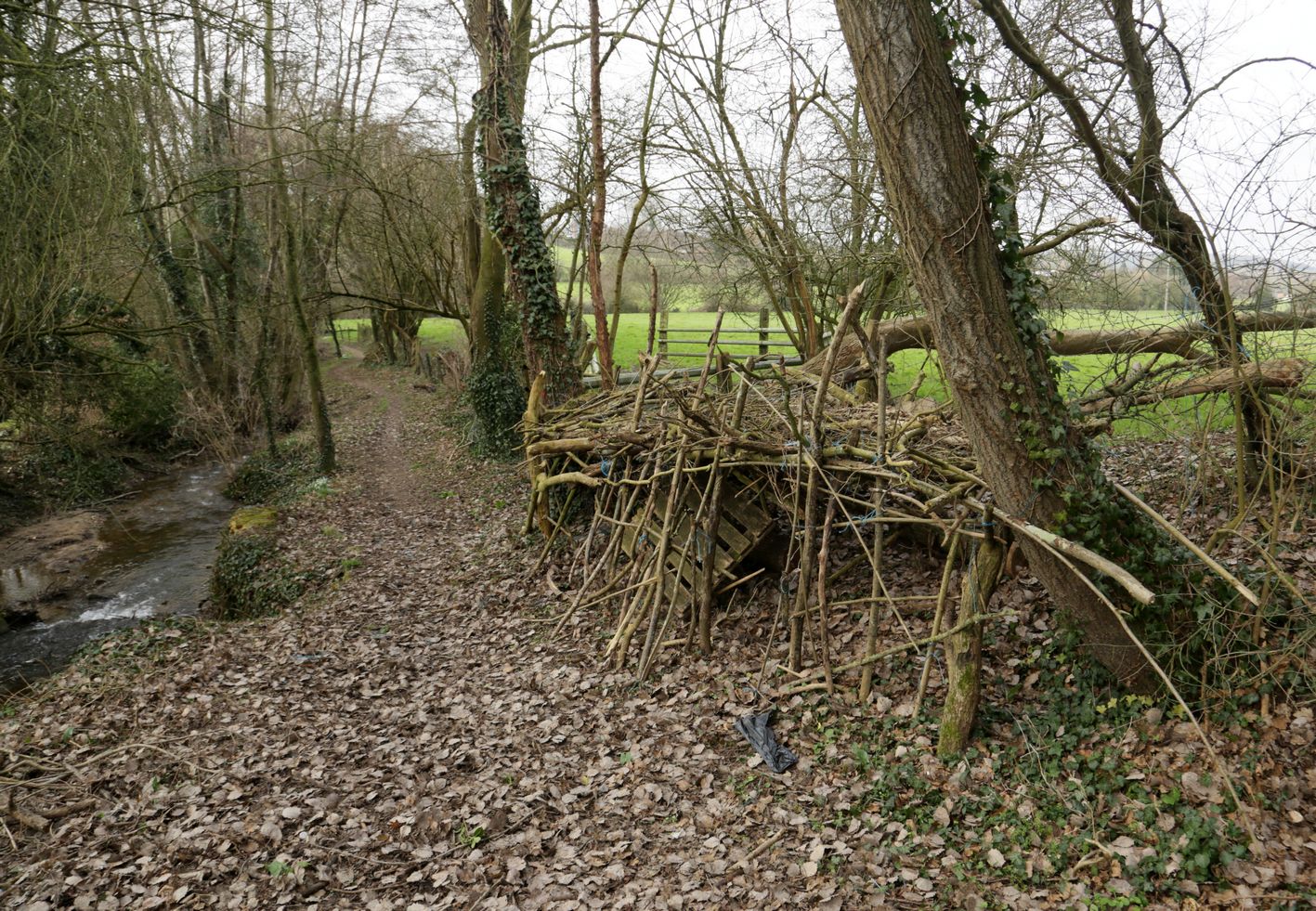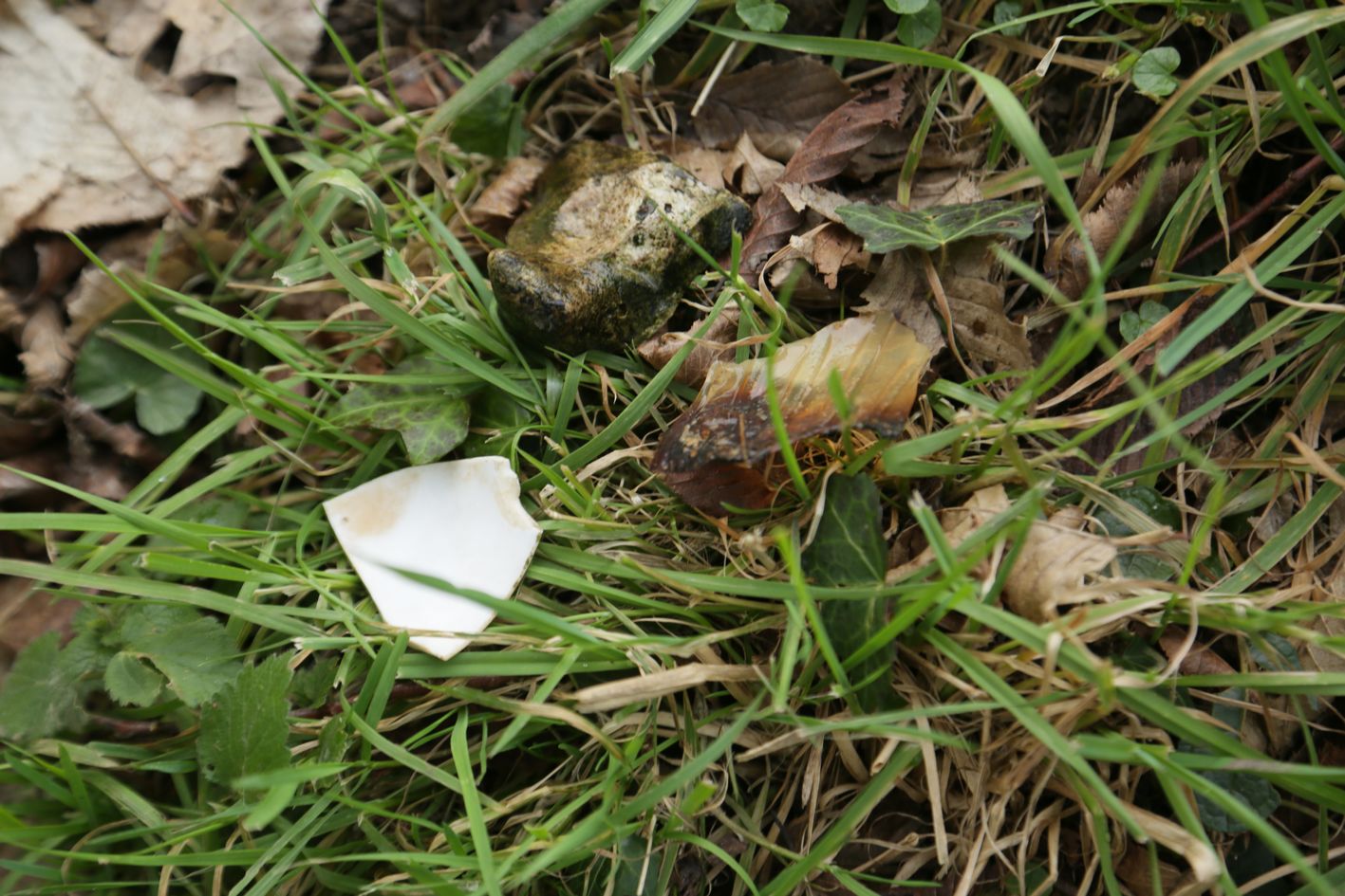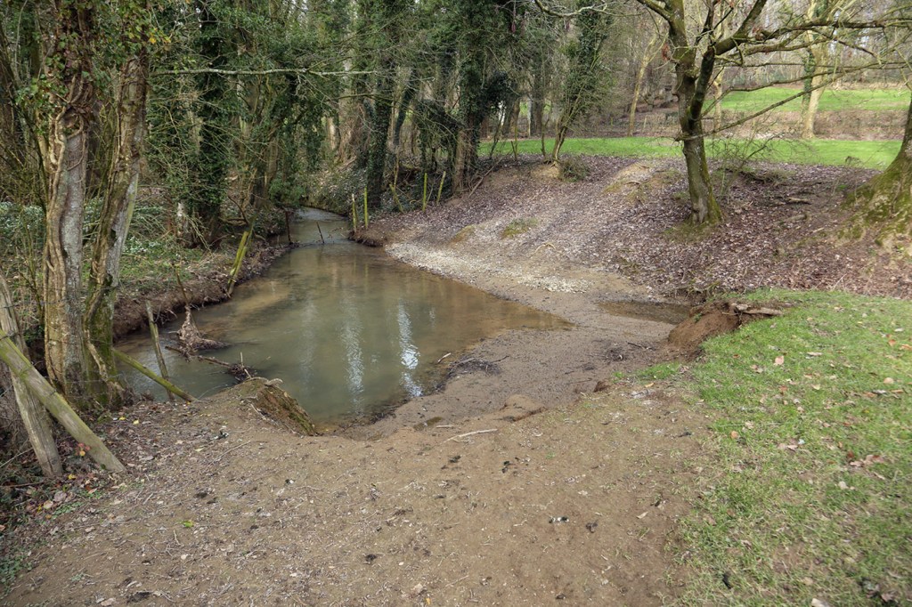 Sur l’autre, rive, remonter un peu le cours d’eau provenant de Febvin-Plafart : longer l’arrière du château, scruter les berges, et revenir sur mes pas, par le bois en longeant un temps le Puits sans Fond : des affaires abandonnées des riverains, vestiges d’une fréquentation révolue, des traces de petits habitants, fort discrètes…