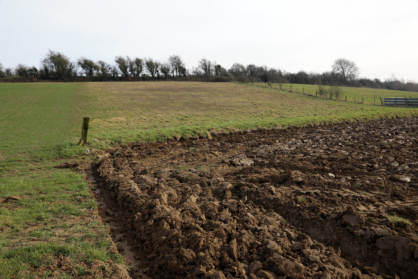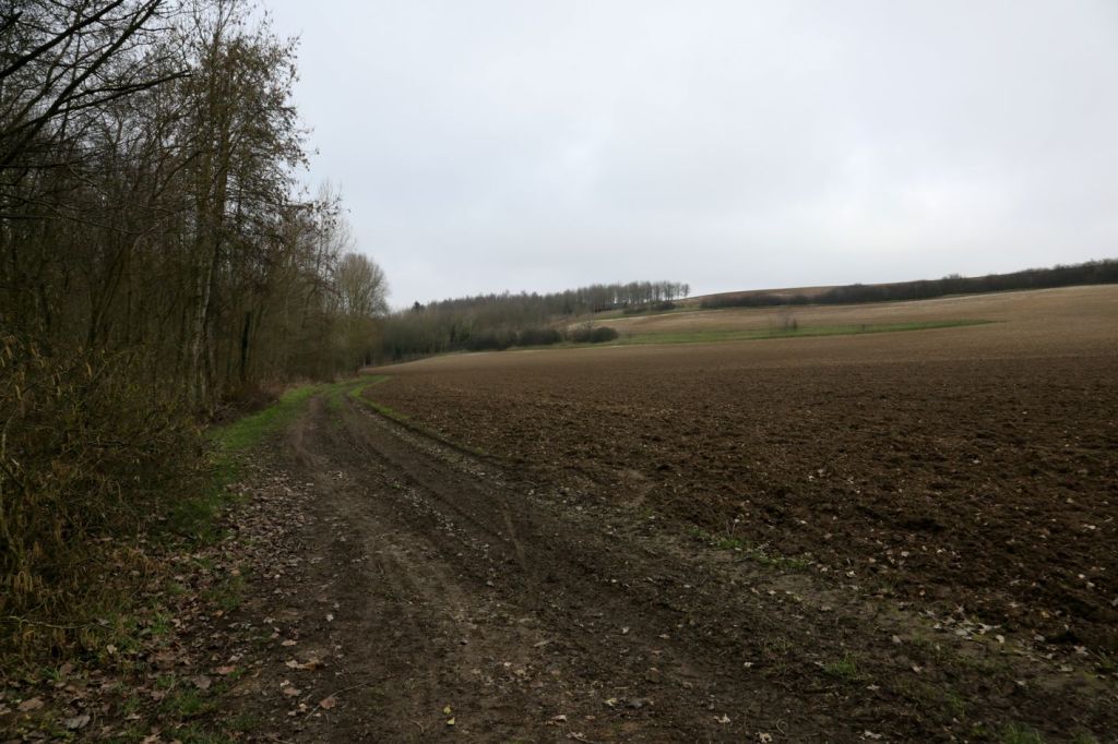 Mercredi 15, suis presque en haut du Fond Berquigny, arrivant par Laires ; au niveau du virage au lieudit des champs le « Fond de la rue des Marais », je poursuis à pieds à travers champ, c’est suffisamment sec : la vallée est à peine creusée.