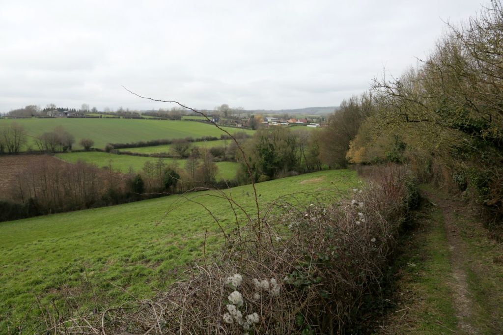 Repartir, quitter Honninghem. Descendre le cours d’eau en direction de Fléchin, tourner sur Pippemont : ça grimpe bien. Dans la côte, une échappée à ma gauche ; je me gare un peu plus haut, le long d’une maison ; le propriétaire, curieux de ma présence, engage la conversation et confirme : le sentier descend bien au cours d’eau, le longe même un peu…