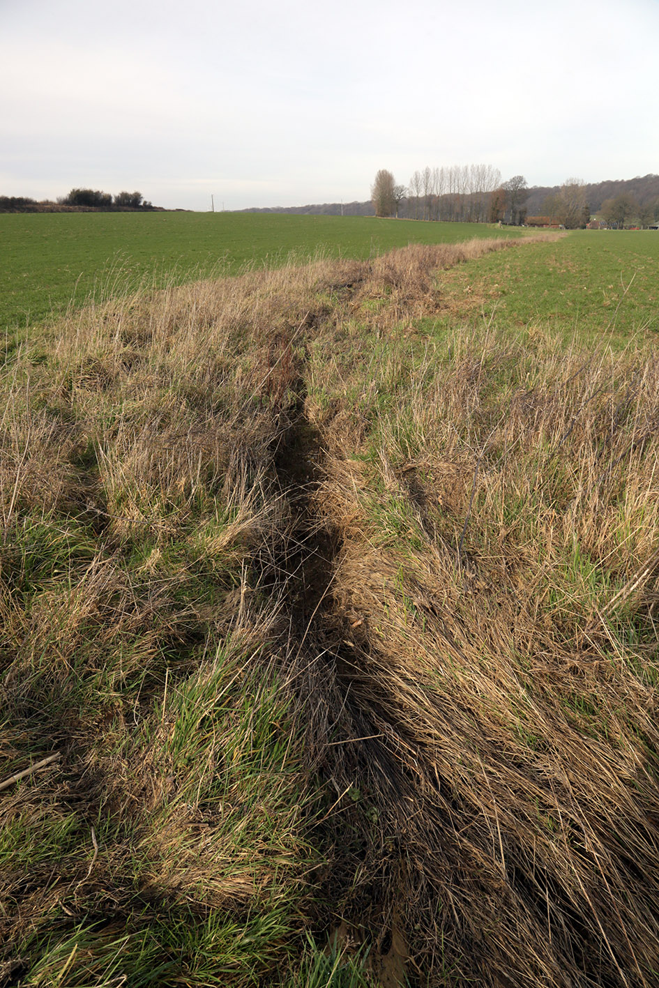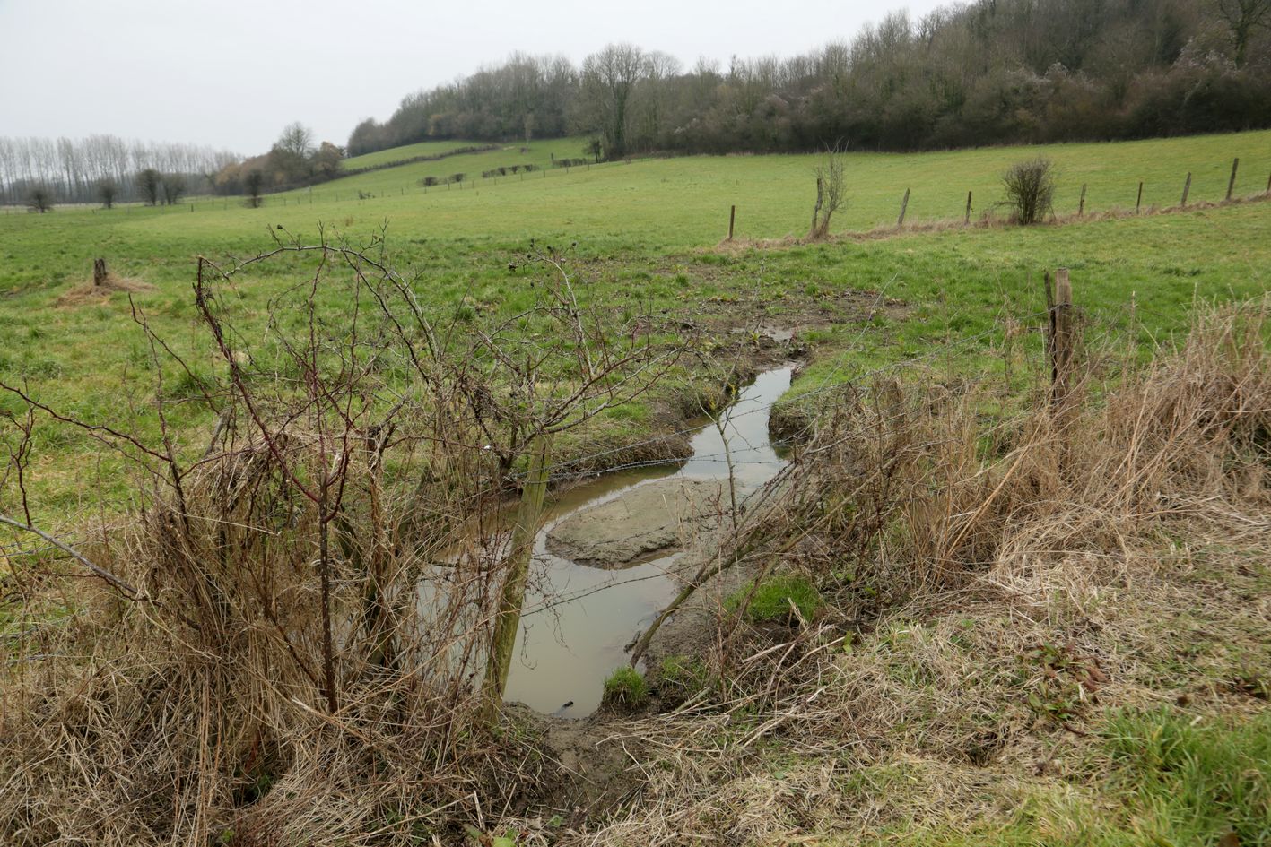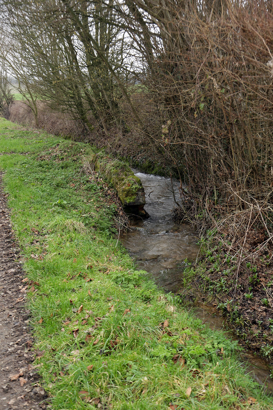 Poursuivre sur Groeuppe, y retrouver le Truvet, il arrive en toute discrétion à la route… Je le suis, de l’autre côté… le vois disparaître sous le trottoir, plus de traces. Emprunter un chemin à droite, une autre arrivée, un fossé à sec, il vient de la direction de Beaumetz, logique, c’est celui que je viens de quitter !