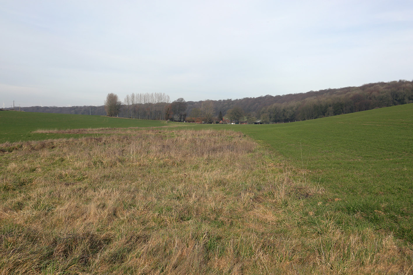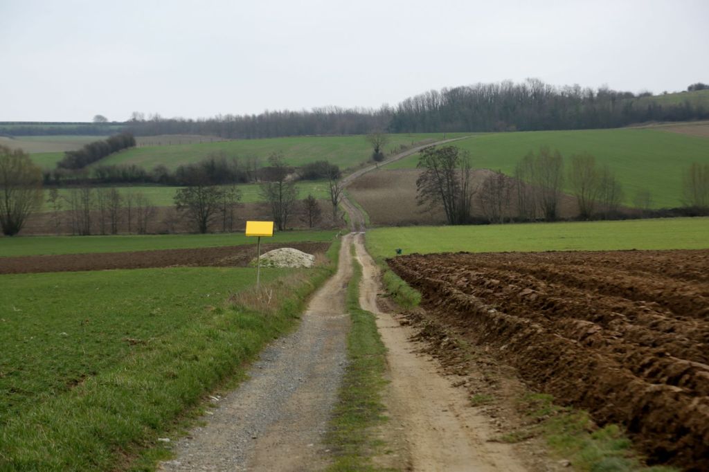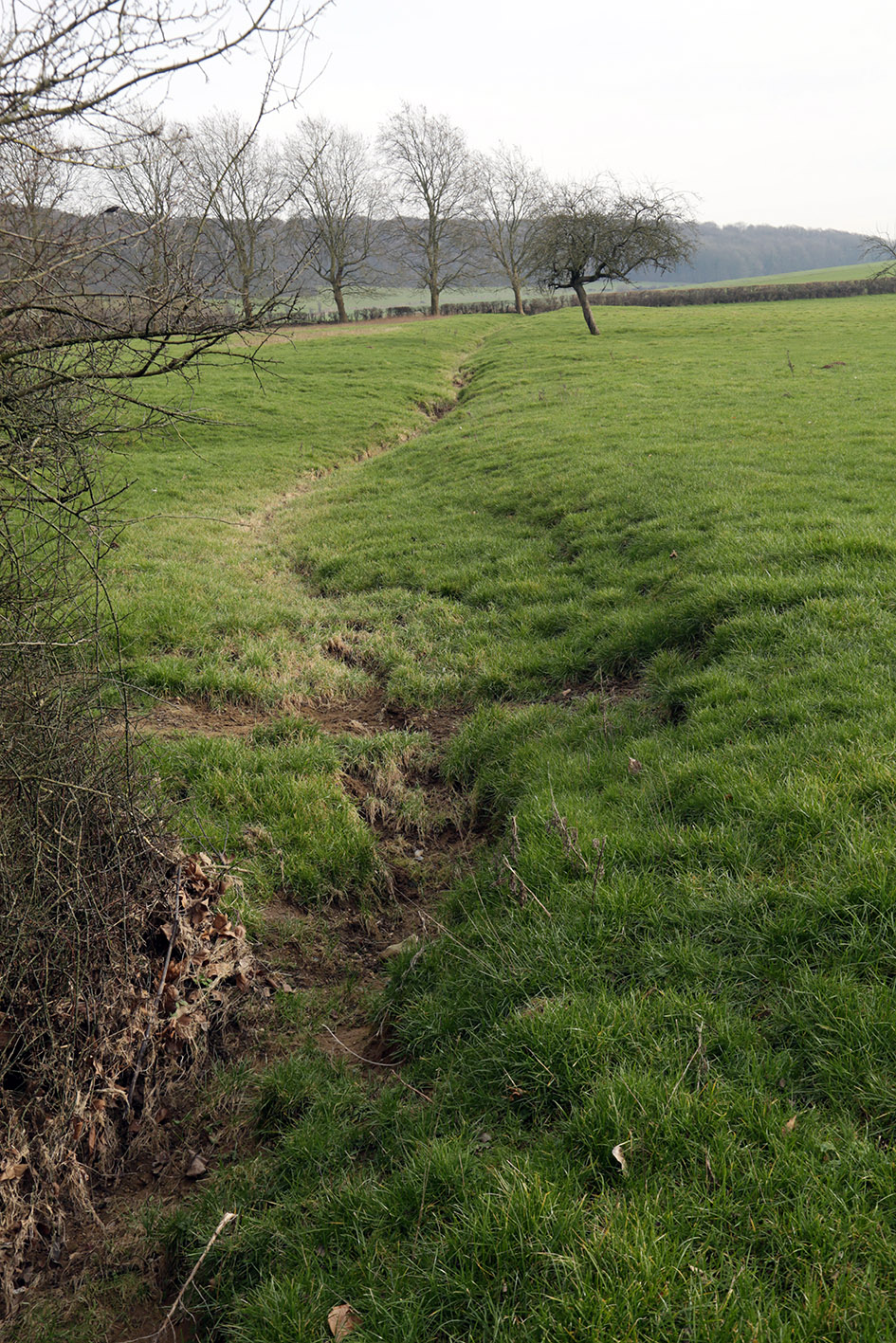 Reprendre la route en direction de Bomy : un chemin à droite, descend tout droit dans le creux de la vallée de Groeuppe ; y chercher le fossé…
