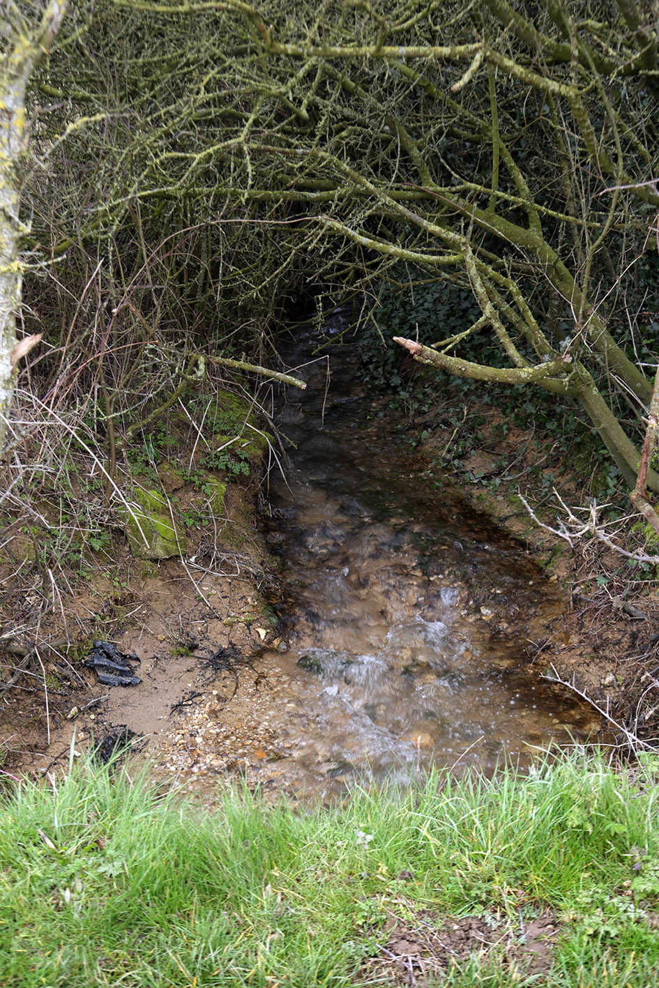 En voyant le flot vif dans le fossé de l’autre côté de la route, je me souviens que Daniel Boys m’avait dit l’avoir remonté jusqu’à trouver une source…