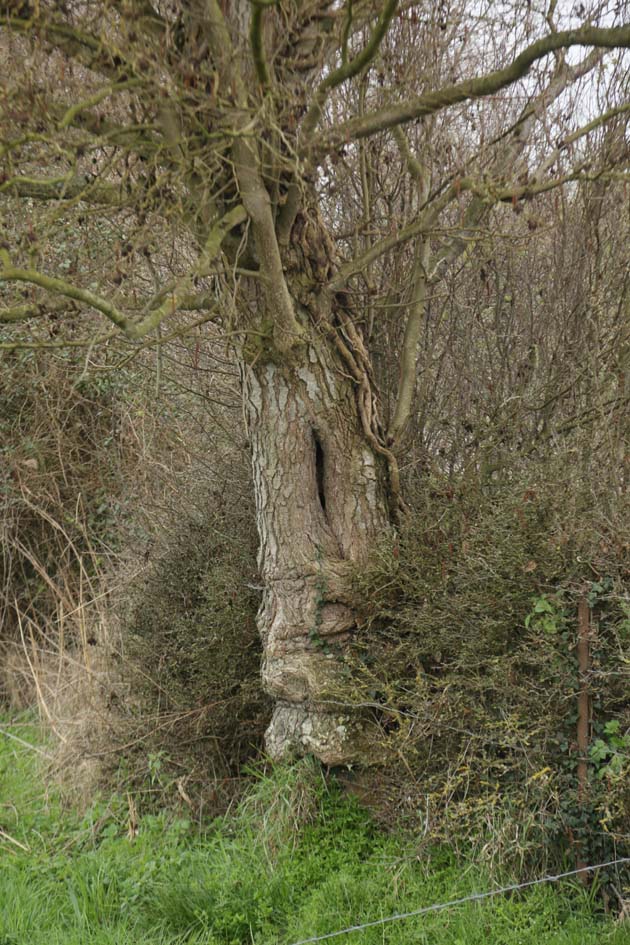 Arpenter une prairie, en émerge une couronne buissonnante cerclée d’une clôture : là se trouve la source hivernale ; entre les tiges de la végétation épineuse, j’aperçois le mouvement bouillonnant de l’eau. Paraît qu’à l’été elle est à sec, c’est sa nature. C’est une source temporaire qui émerge d’un trou conique de 3-4 m de profondeur !