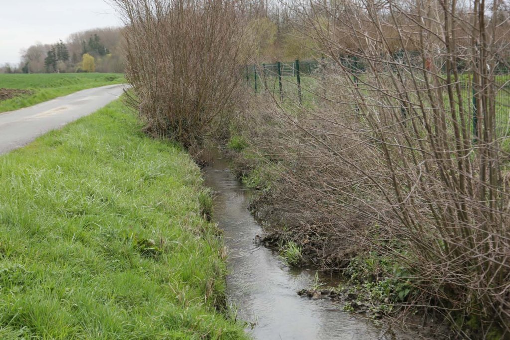 Poursuivre sur Groeuppe, y retrouver le Truvet, il arrive en toute discrétion à la route… Je le suis, de l’autre côté… le vois disparaître sous le trottoir, plus de traces. Emprunter un chemin à droite, une autre arrivée, un fossé à sec, il vient de la direction de Beaumetz, logique, c’est celui que je viens de quitter !