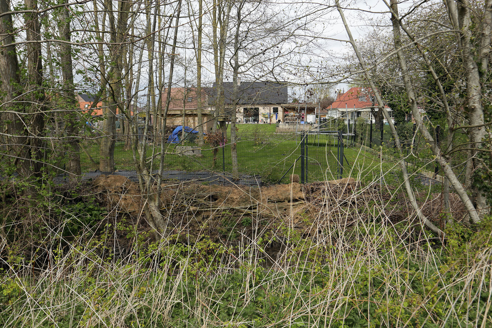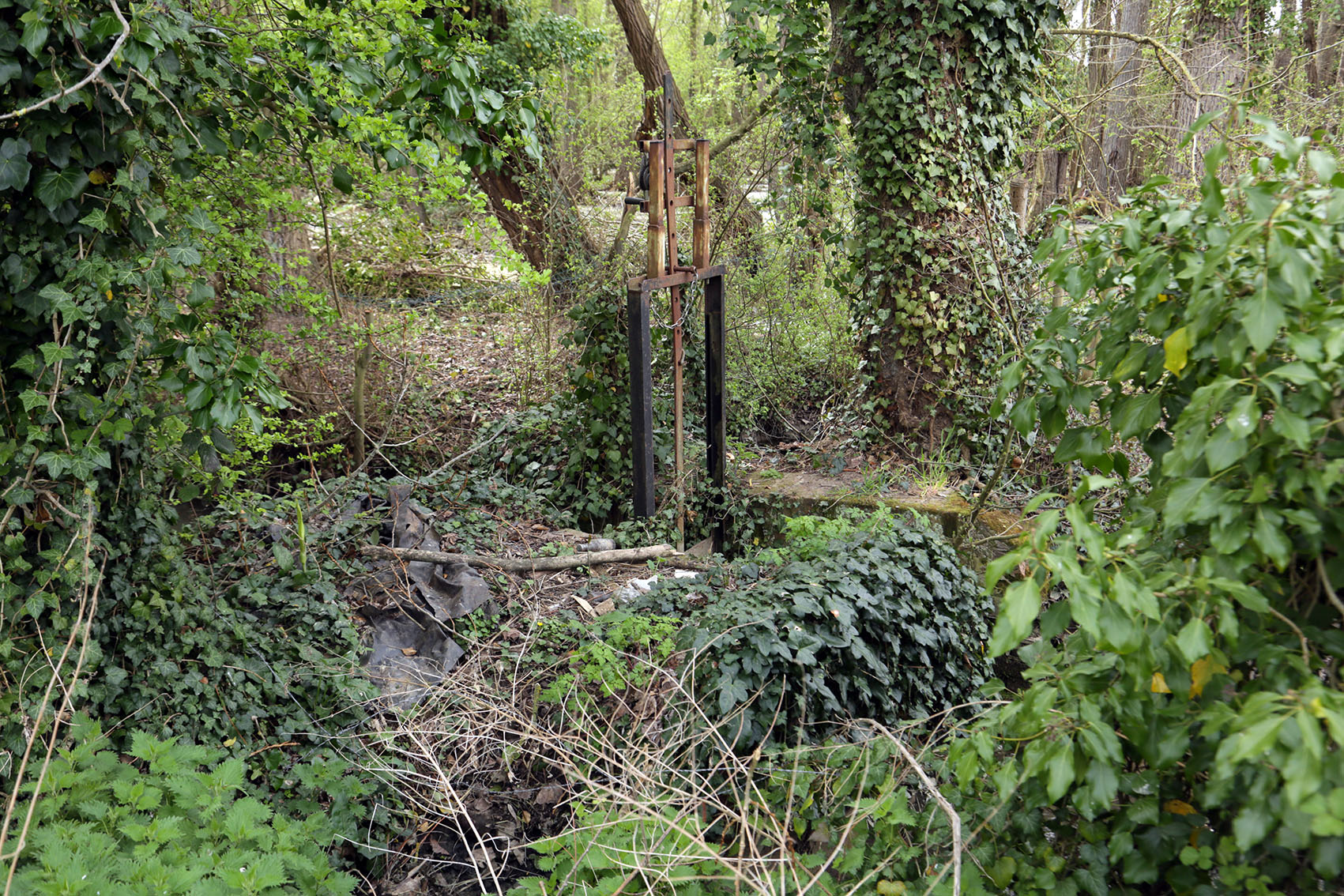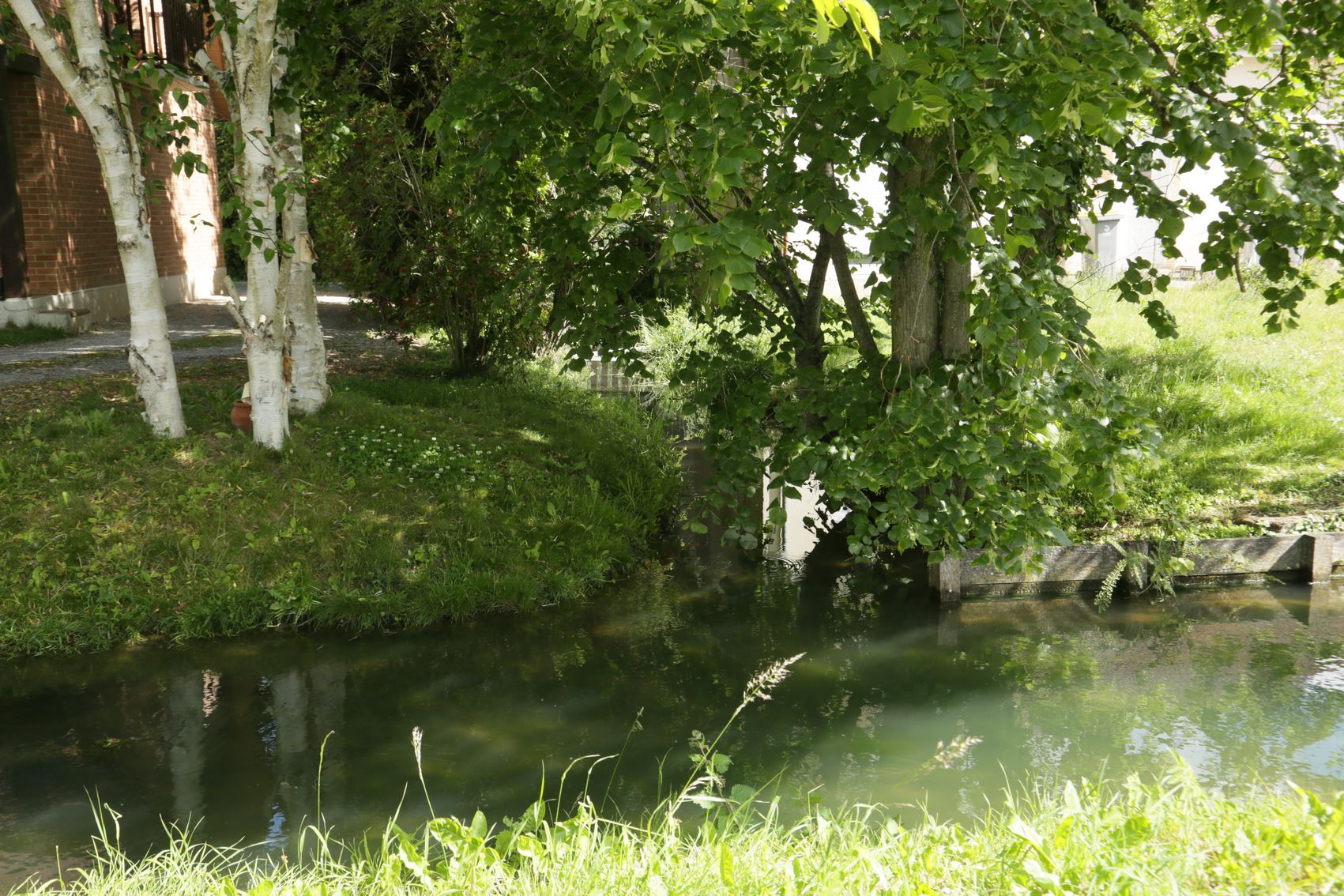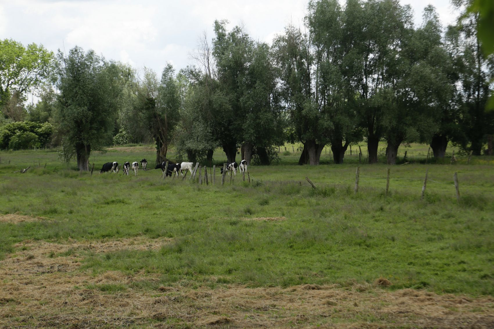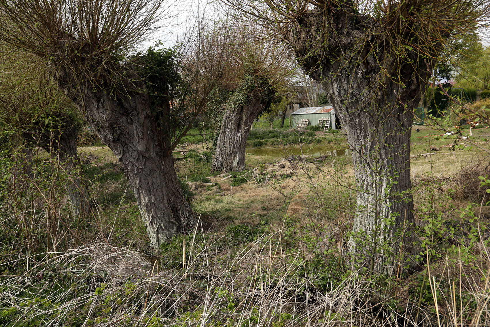 En attendant, sur notre droite, de l’autre côté du fossé, à nouveau, des propriétés : des fonds de jardin, avec porte d’accès à l’eau… des emplacements de pompes ; l’une d’elle est en place. Aucun doute, sont là pour alimenter les jardins…