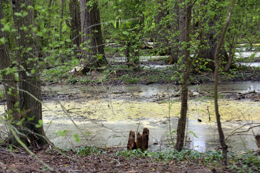 Poursuivre, longer le petit bois. A travers les frondaisons, des flaques d’eau, c’est inondé, marécageux. Tout s’explique, la veille, j’avais vu atterrir un héron dans cette zone…