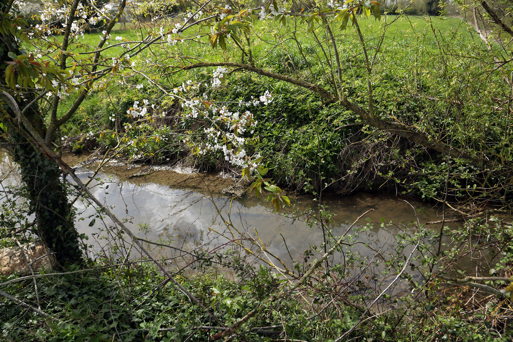 En arrivant à la ferme où il venait chercher le lait – parfois du lapin, il indique l’eau qui passe sous la route, m’expliquant qu’elle longe la ferme en direction du petit bois que j’avais vu avec Amandine, le mercredi d’avril où on s’étaient rencontrés.