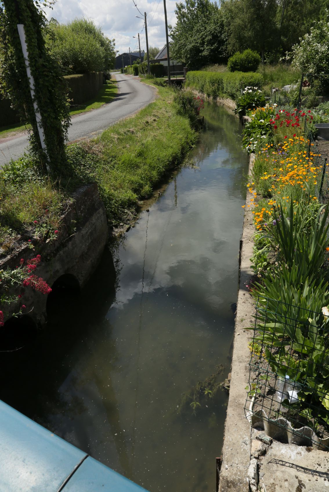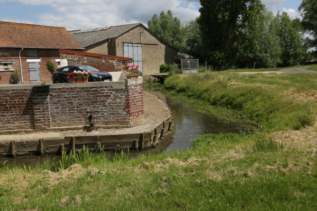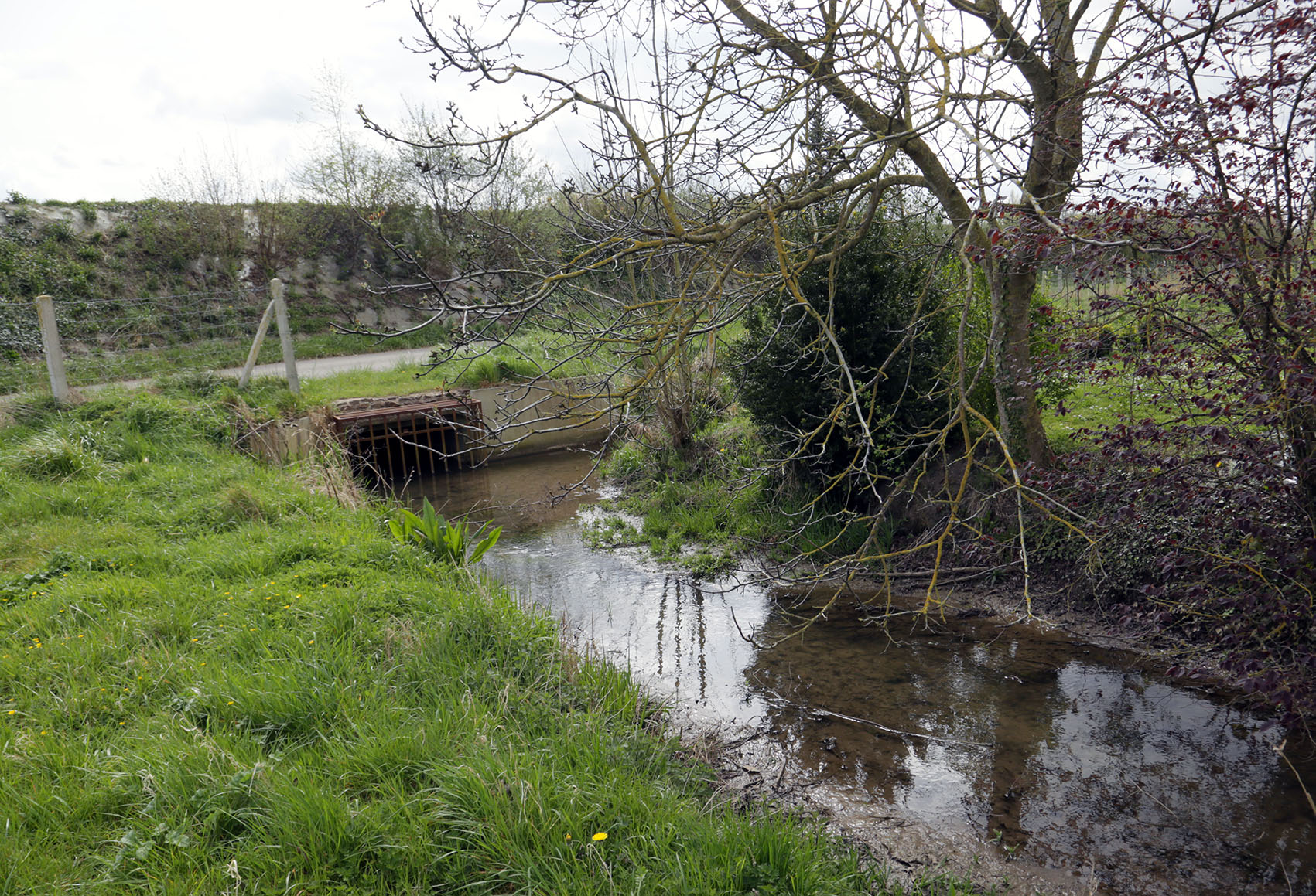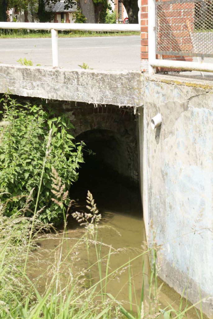 L’eau s’engouffre et passe sous le canal. Mon aventure de la journée s’arrête là… Je vais devoir chercher sur une carte ce qu’il advient du cours d’eau : va-t-il se perdre dans les terres basses des Flandres ? ou bien se jeter dans quelque rivière d’importance ?