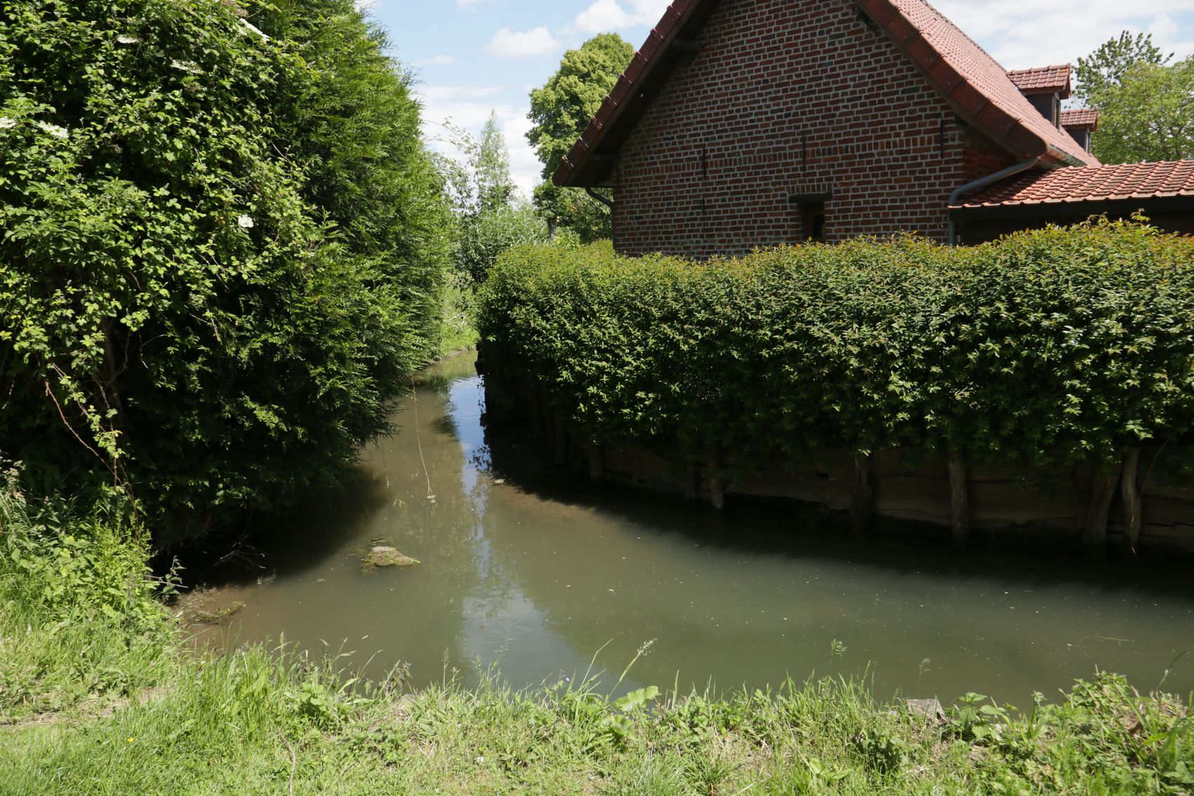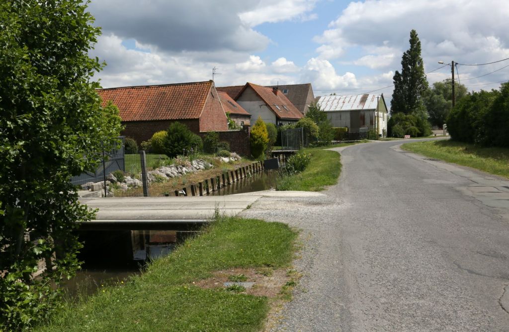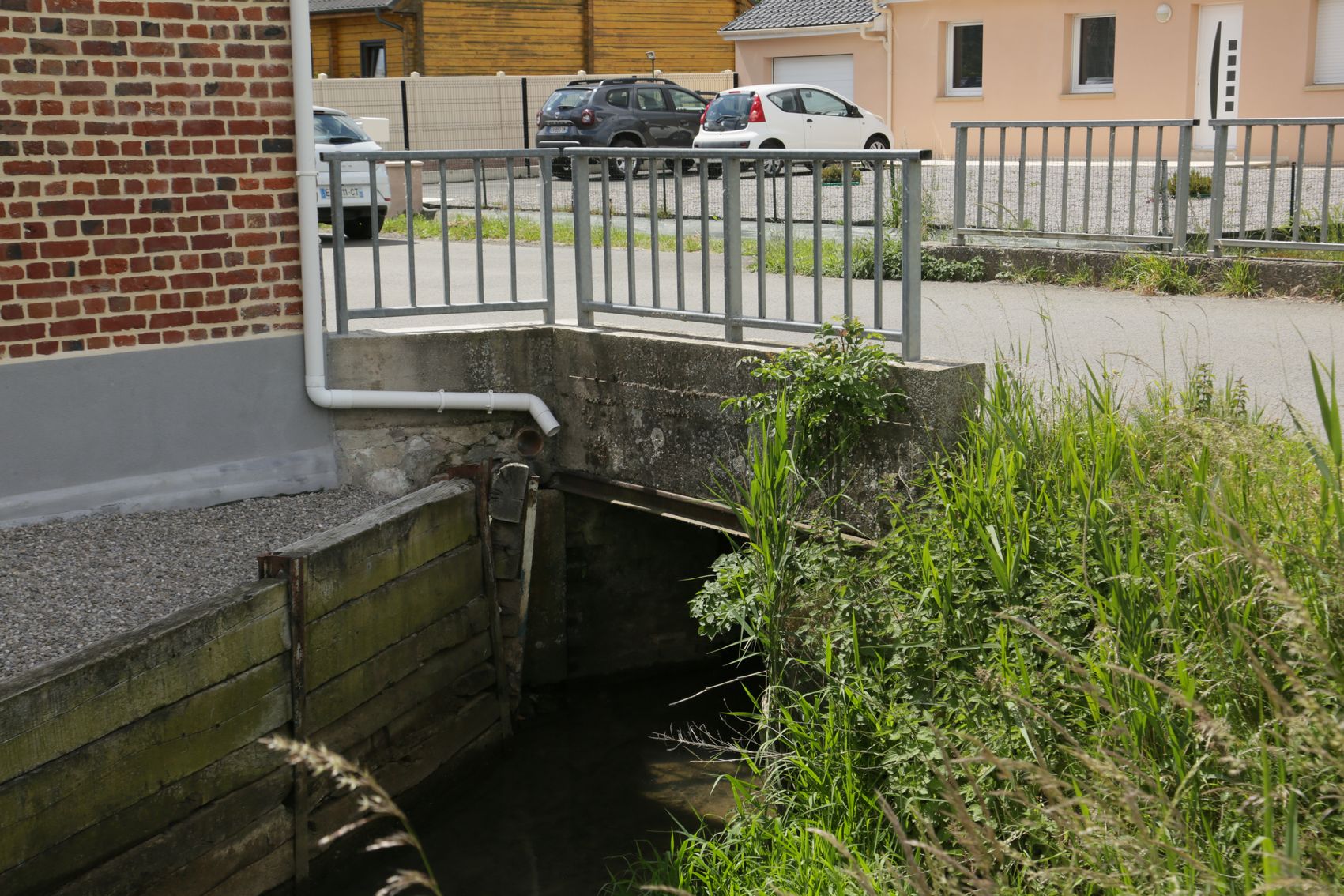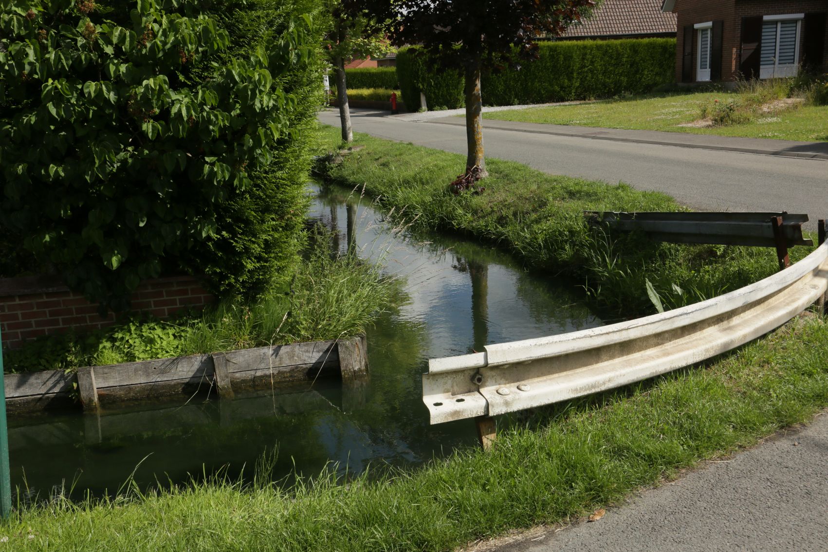 L’eau s’engouffre et passe sous le canal. Mon aventure de la journée s’arrête là… Je vais devoir chercher sur une carte ce qu’il advient du cours d’eau : va-t-il se perdre dans les terres basses des Flandres ? ou bien se jeter dans quelque rivière d’importance ?