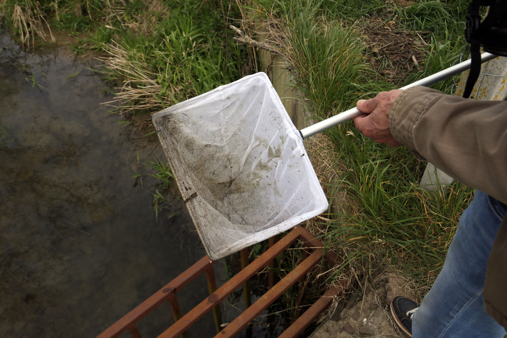15h45. En retournant, nous apercevons quelqu’un au niveau de la grille… Semble avoir une épuisette en main, ça m’intrigue… Aller voir.
