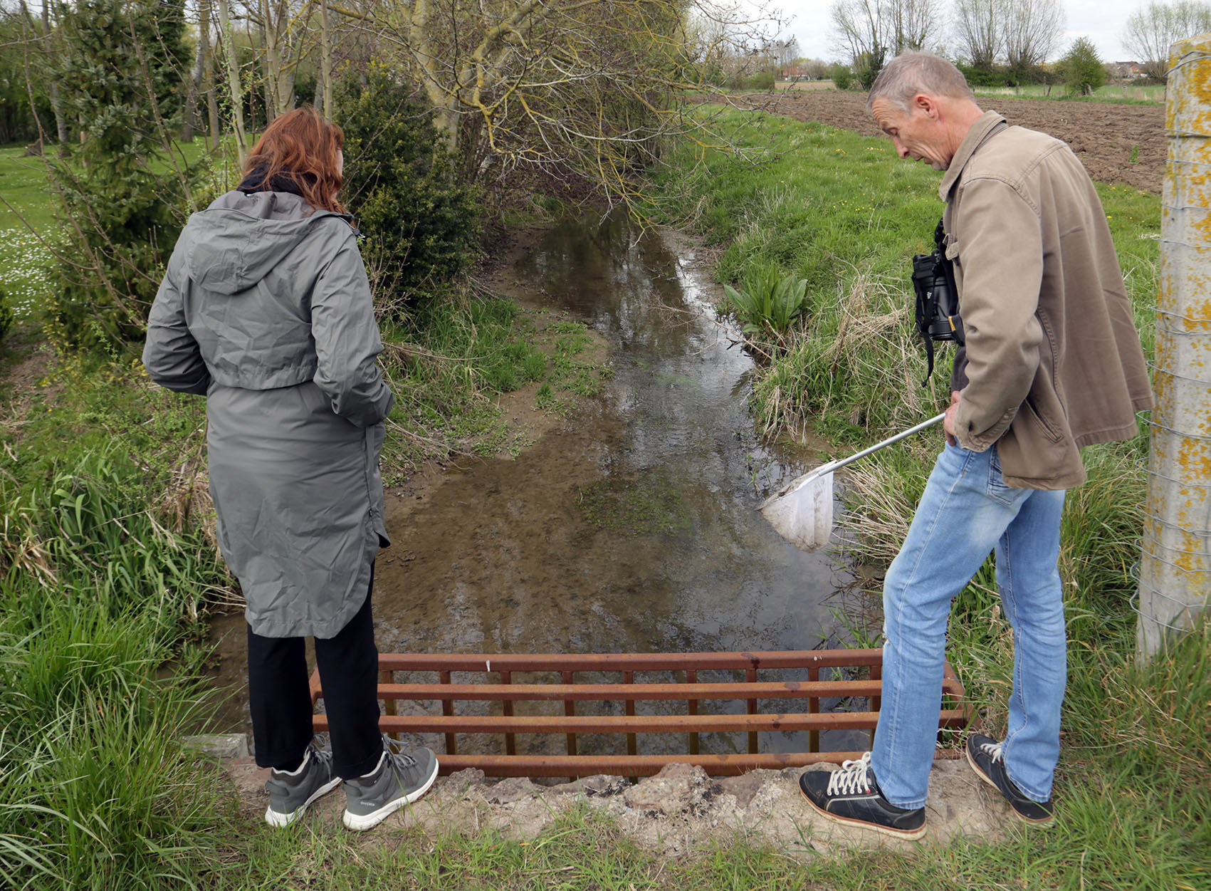 Me fait un plan : m’explique qu’elle allait dans la Lacquette en passant sous le bras principal, pour se jeter dans le bras de dérivation qui file sous la route de Witternesse… Une histoire dont nous avons fait le tour le 12 avril avec Ianis lorsque nous l’avons traqué dans le parc du site des assurances Pilliots…