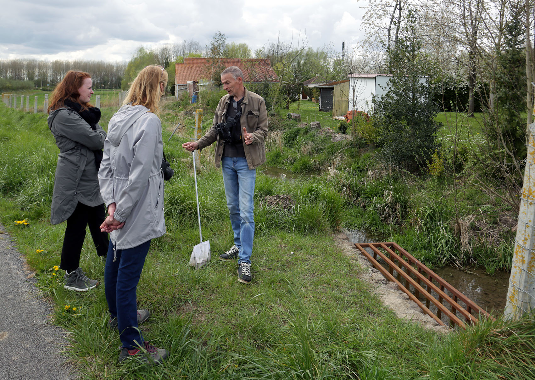 Tout en marchant, me fait remarquer le canard qui niche dans le creux d’une souche, les épinoches qui s’enfuient à notre arrivée au fond d’un fossé…