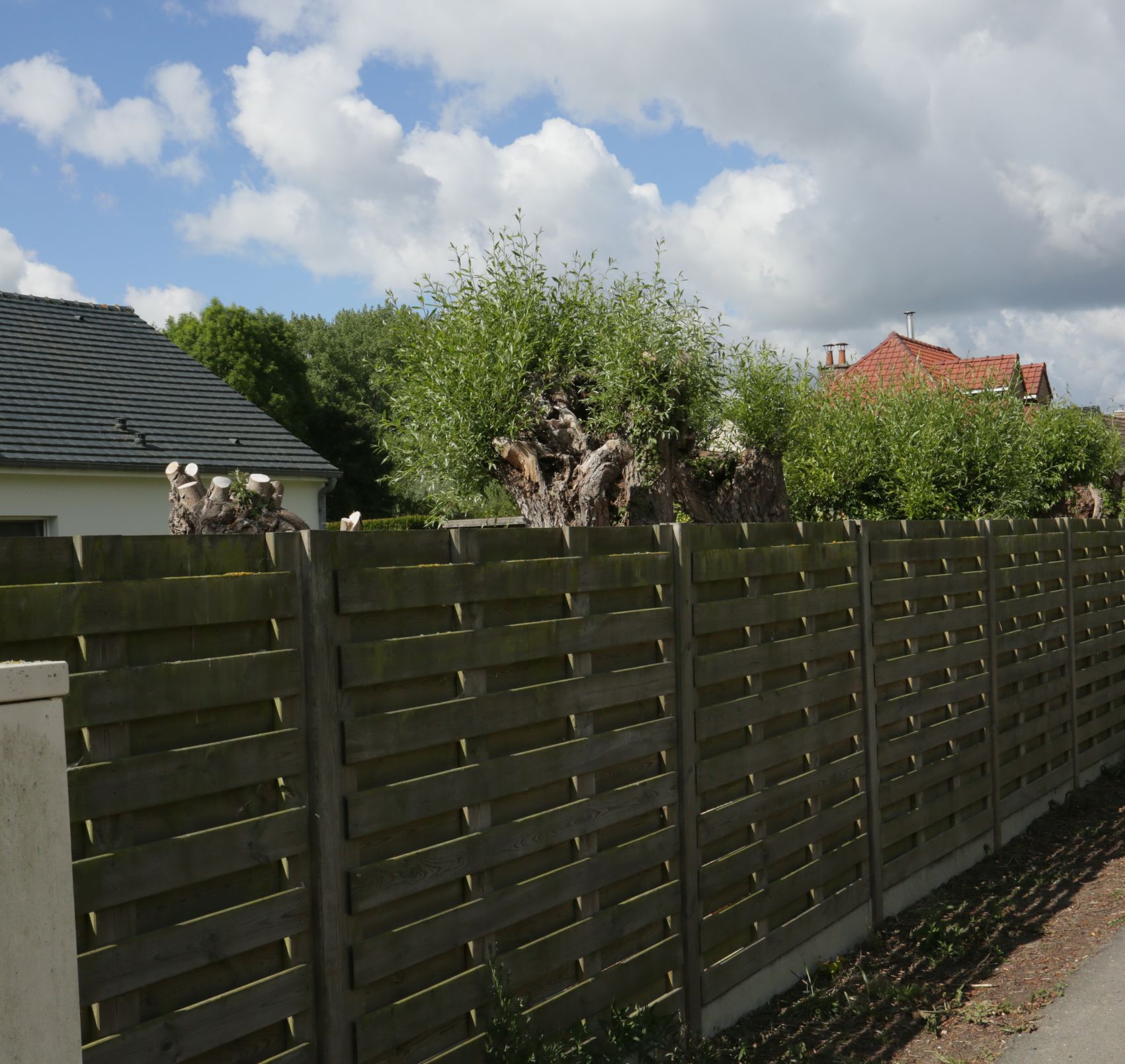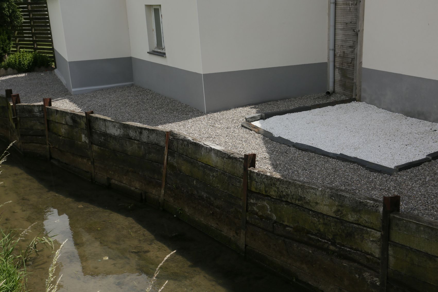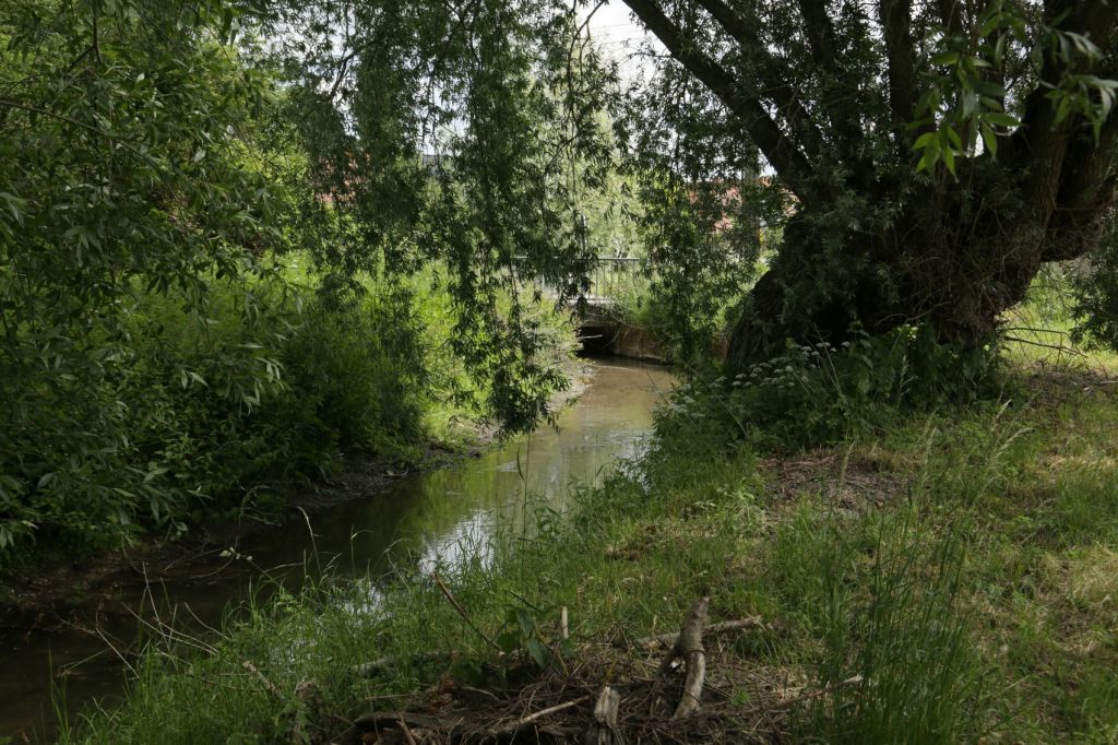 Là, non loin du pont, il me montre une prise d’eau qui détourne une partie du courant vers un fossé sur notre droite, le courant lèche assidument le terrain d’une habitation, au point d’endommager une clôture, penche dangereusement… J’imagine en hiver le travail de sape du cours d’eau…