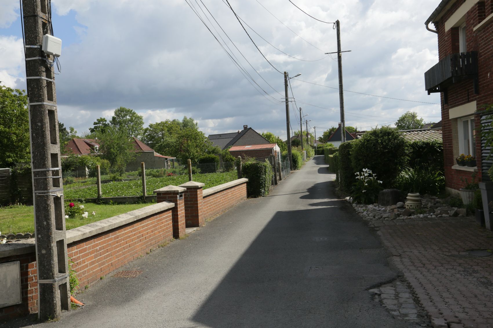 En remontant la rue, une voiture s’arrête : il reconnait le gars, un fils de la maison, le « ch’taupier » (piégeur de taupe accrédité), le salue, échange quelques mots avant de s’engager dans l’impasse à gauche. M’avoue qu’il n’est jamais allé par là, ne sait pas pourquoi… Il veut voir.