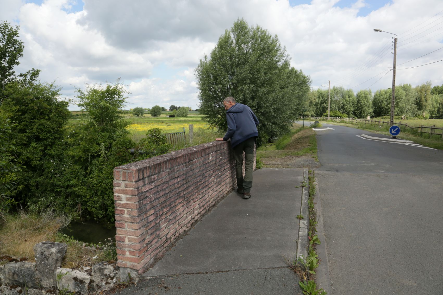 En suivant un tracé sur la carte, il pointe l’endroit où, pour lui, le fossé venant de Mississipi devient l’Echeu. Le cours d’eau coule parallèlement à la Laque qui est juste un peu plus bas, dans le marais de Lenglet.