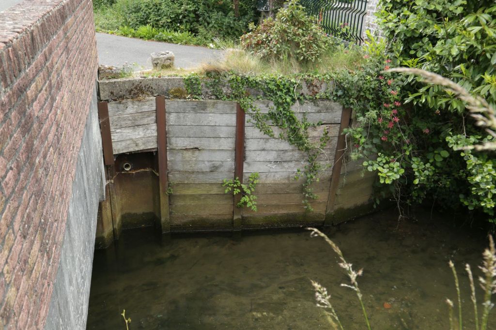 De l’autre côté du bras de dérivation, Dominique me montre ce qui pourrait s’apparenter à un ancien ouvrage de briques : un passage ?… Bouché !