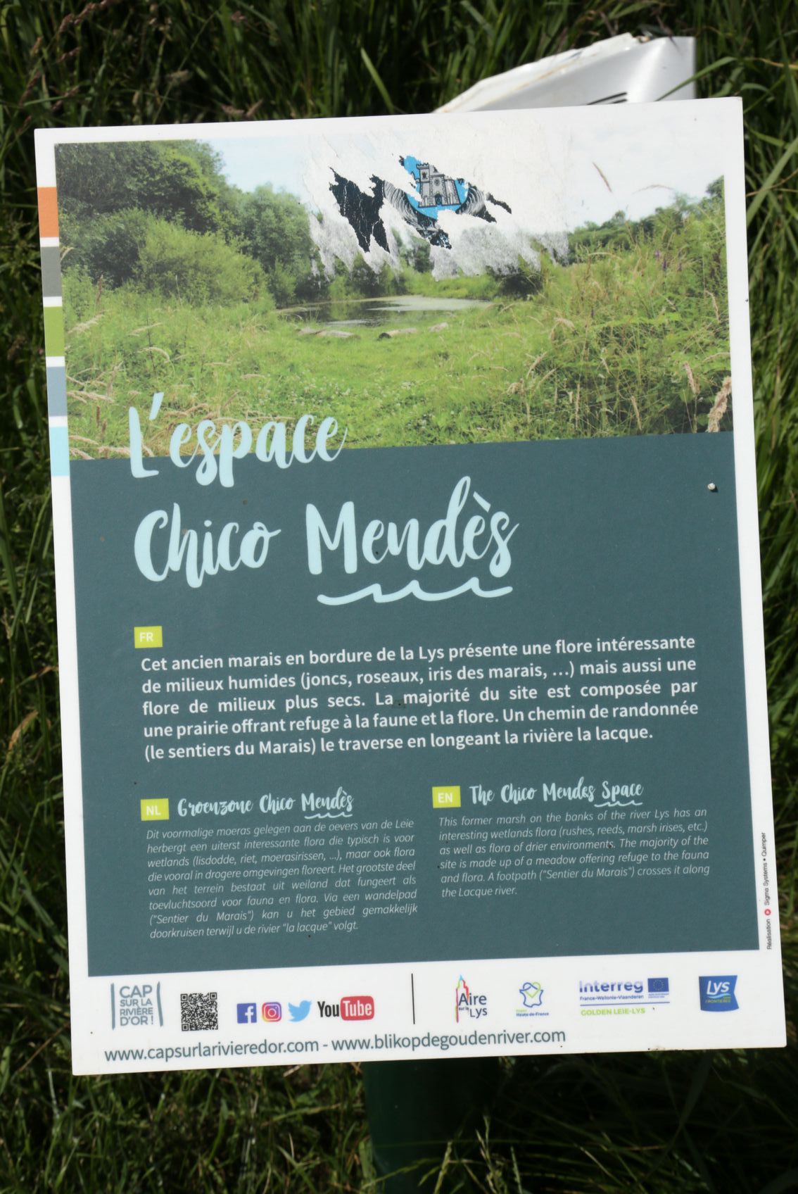 En retournant sur le village de La Lacque, Dominique me propose de me guider vers un autre accès du Marais de Lenglet, au niveau de la rue du Portugal. Sur la contournante, prend aussitôt à droite une petite route agricole, à un carrefour, de nouveau à droite, entrer dans un hameau, passer un premier pont puis, aussitôt, un deuxième… Nous buttons sur un espace de stationnement : il m’explique qu’il y avait une piste de karting à côté et, en face, un terrain de tir à l’arc… Après quelques recommandations pour la poursuite de l’expédition, mon guide repart…