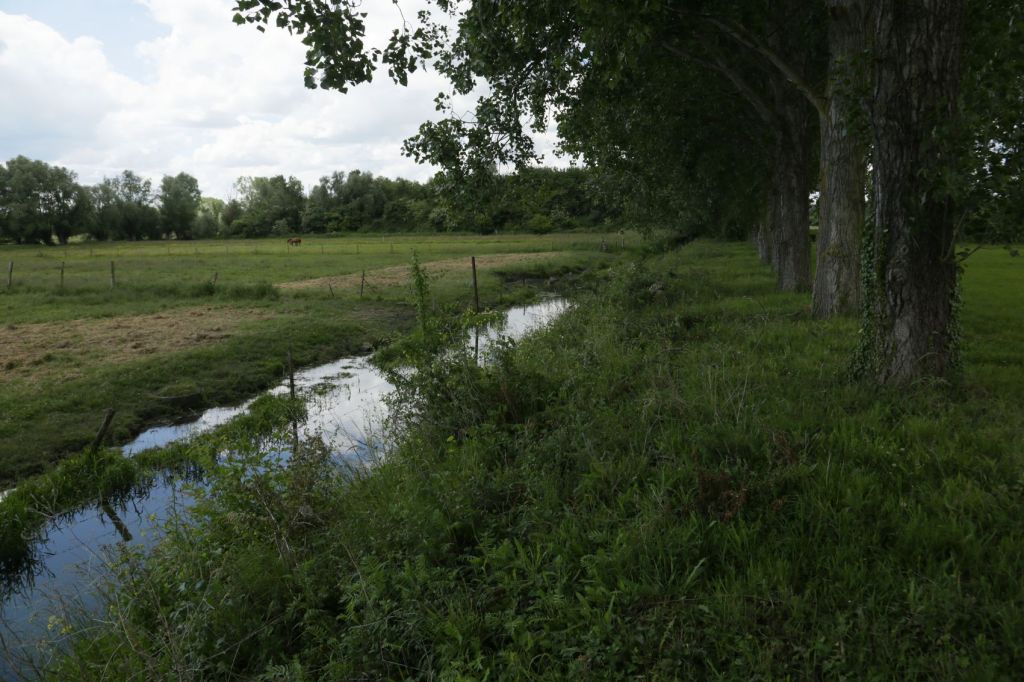 Sur notre gauche, la rivière s’enfonce, entamant ses méandres. Retourner à droite : le fossé de dérivation est bien droit, bordé de saules… Jauger, comparer…