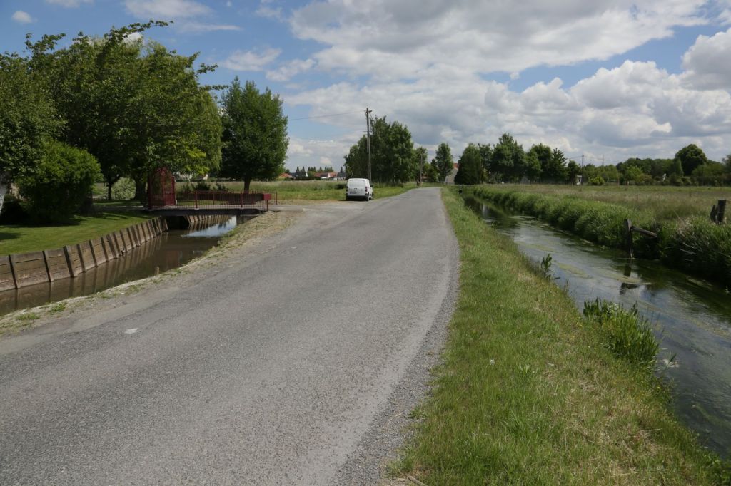 Finalement, celui-ci débouche sur une petite route, visiblement peu empruntée, suis à son cul de sac… La route dessert quelques maison perdues au bord du canal.