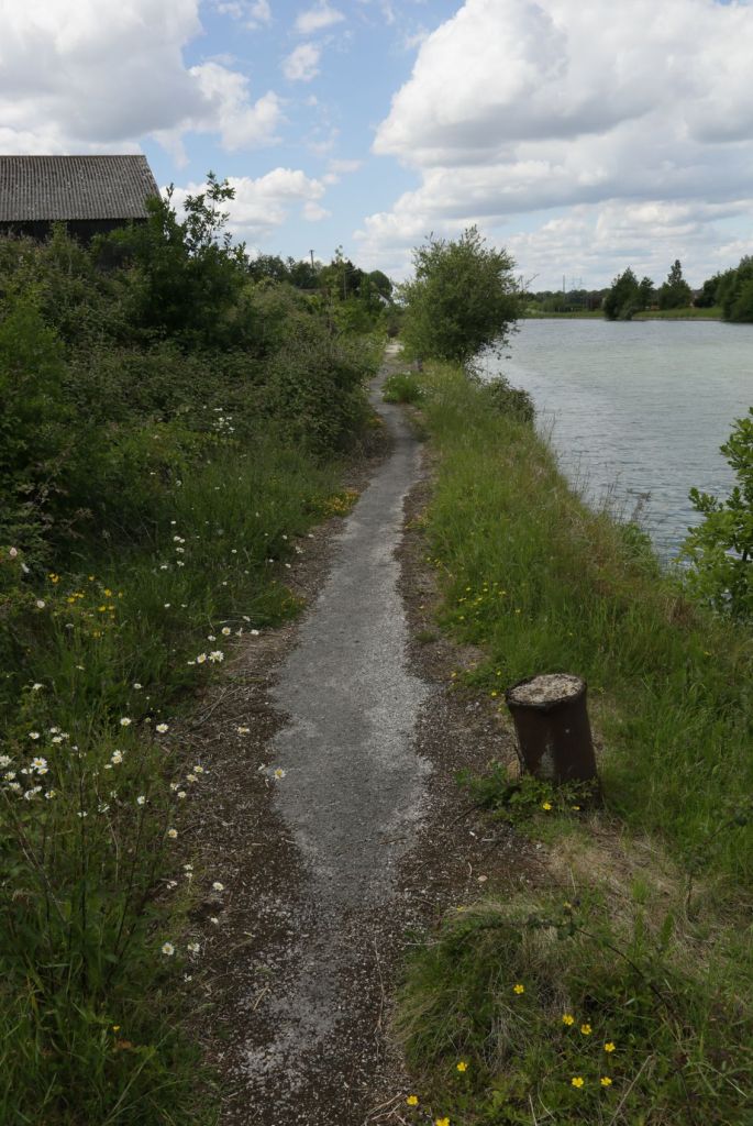 Je mets un certain temps avant d’apercevoir un sentier ténu. J’attendais autre chose, un chemin d’importance qui longerait le canal ; a dû y avoir, mais aujourd’hui, rien, la friche…