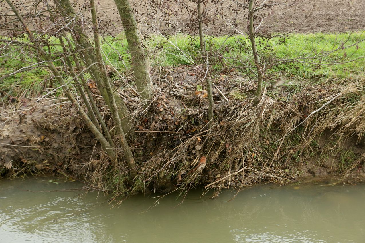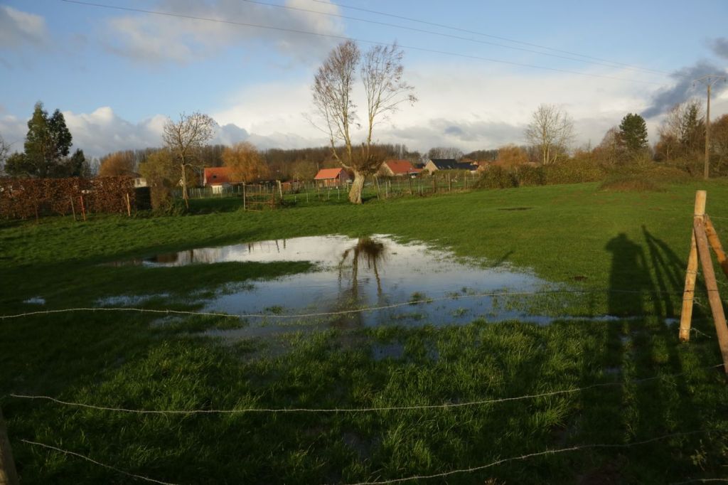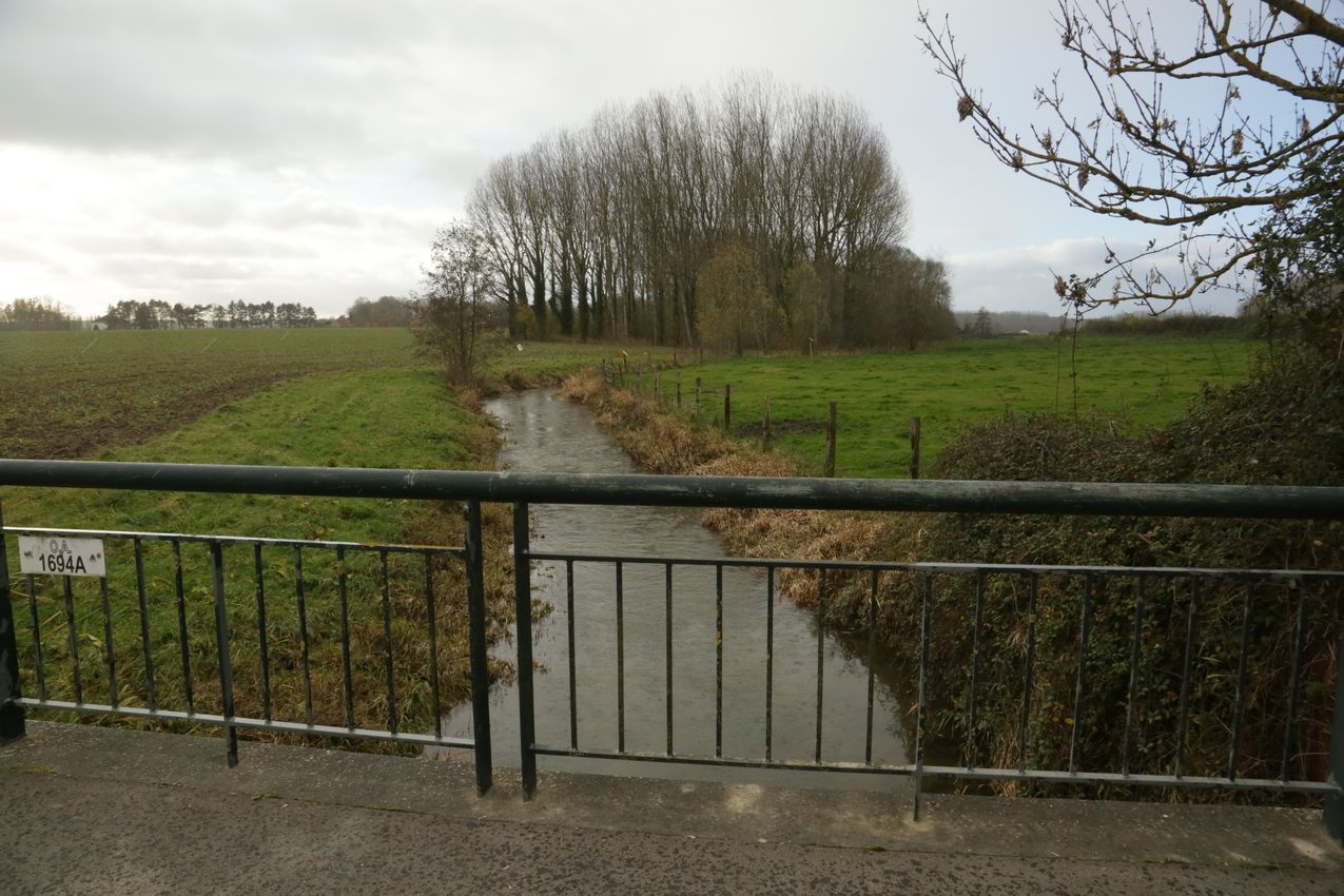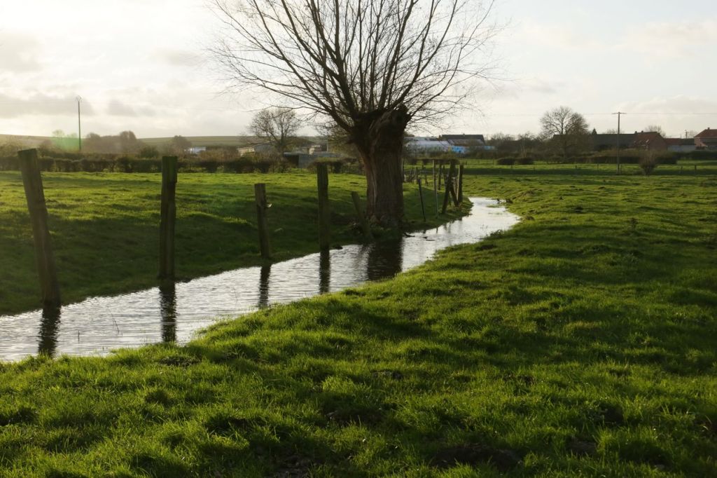 Au retour, Fabienne montre un fossé sur notre gauche, Bertrand nous dit que c’est son fossé de décharge, il remonte et vire à droite et contourne l’étang jusqu’à l’endroit où nous avons vu sa sortie d’eau… Difficile pour nous, de nous rendre compte. Ça corrobore le fait que ce marais est truffé de rigoles et de fossés qui relient ou reliaient des cressonnières, ils se déchargent dans ce fossé central qui conduit les eaux au cours d’eau. Un énorme réseau draine les parcelles, il faudrait imaginer toutes ces résurgences, ces puits artésiens comme autant de sources qui viennent grossir le Mardyck, et font finalement le Mardyck.