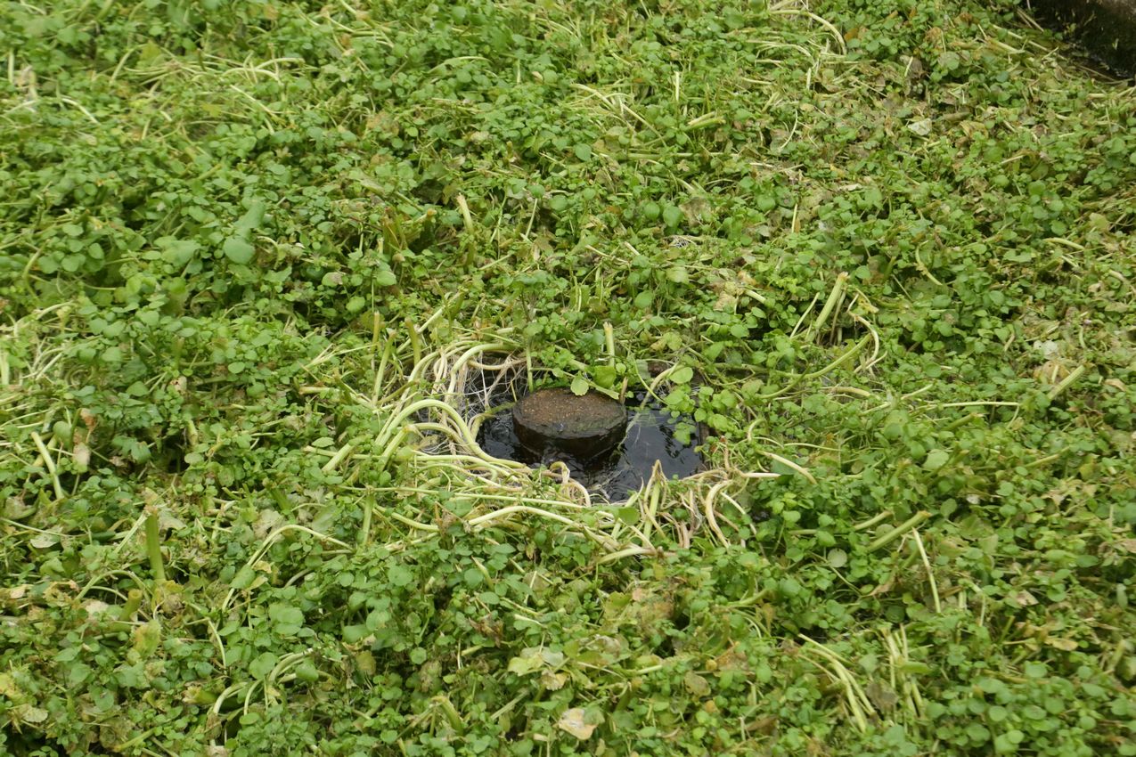 Il faut donc imaginer l’exploitation comme un ensemble de bassins savamment reliés à des rigoles souterraines d’évacuation d’eau… Là, on ne voit rien, on ne devine pas non plus au premier coup d’œil, faut l’éduquer ; après s’être fait expliqué, nous commençons à voir la cressonnière autrement.
