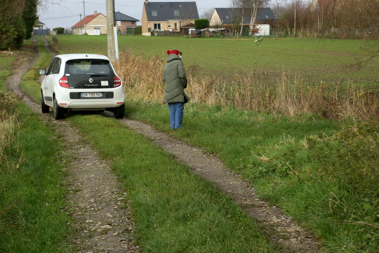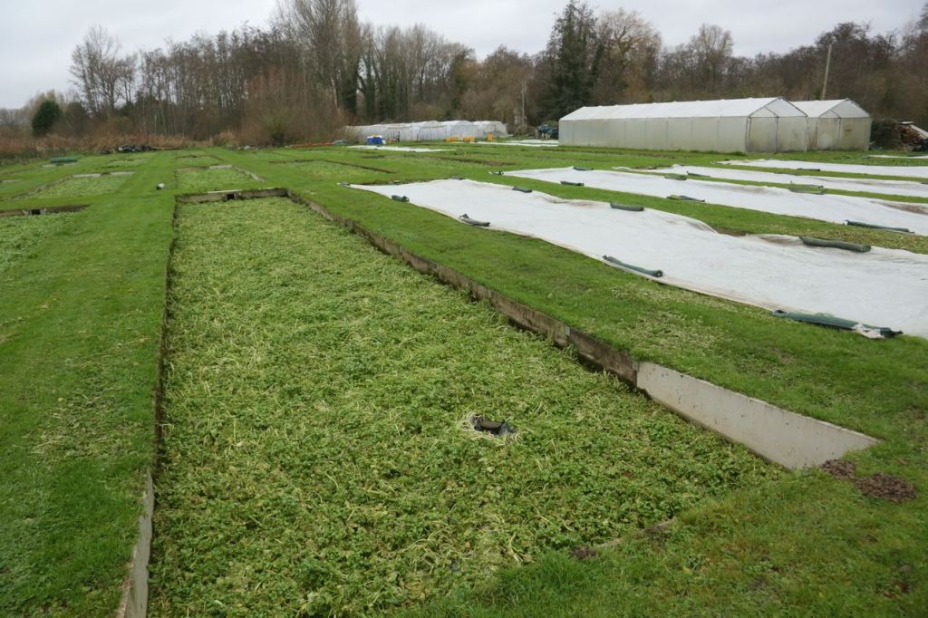 1155 rue des Prés : on aperçoit les véhicules de l’entreprise. Je m’annonce, la dame sursaute, je l’ai visiblement surprise ; elle nous indique où retrouver son mari, il est en train de récolter dans la cressonnière.