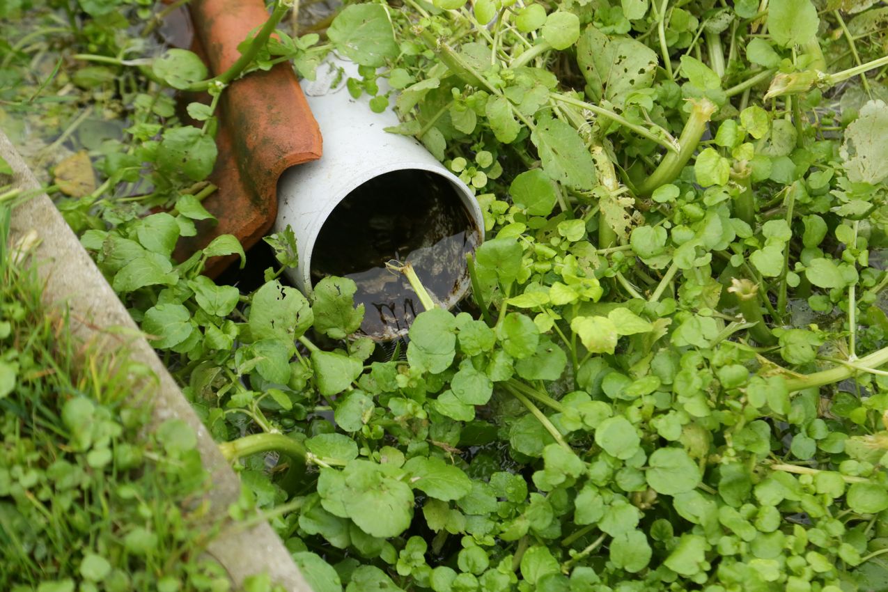 Bertrand nous entraîne derrière lui, il nous présente méthodiquement des arrivées d’eau, des puits artésiens, des rigoles d’évacuations. Il évoque les travaux qu’avait fait l’ancien cressiculteur : « là, c’est la sortie qui rassemble les eaux, on voit qu’ici il devait avoir un vanne, il avait sans doute construit ça pour contrôler en cas d’inondations. » Démonstratif, il nous montre, descend pour atteindre la glissière du batardeau. « Il devait utiliser une pompe pour rejeter l’eau de l’autre côté lorsque ça menaçait d’inonder. »