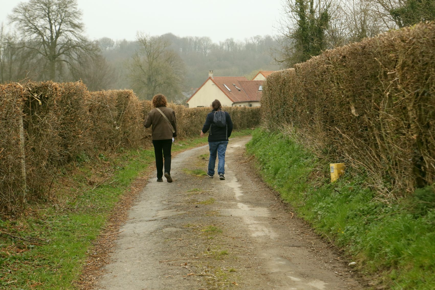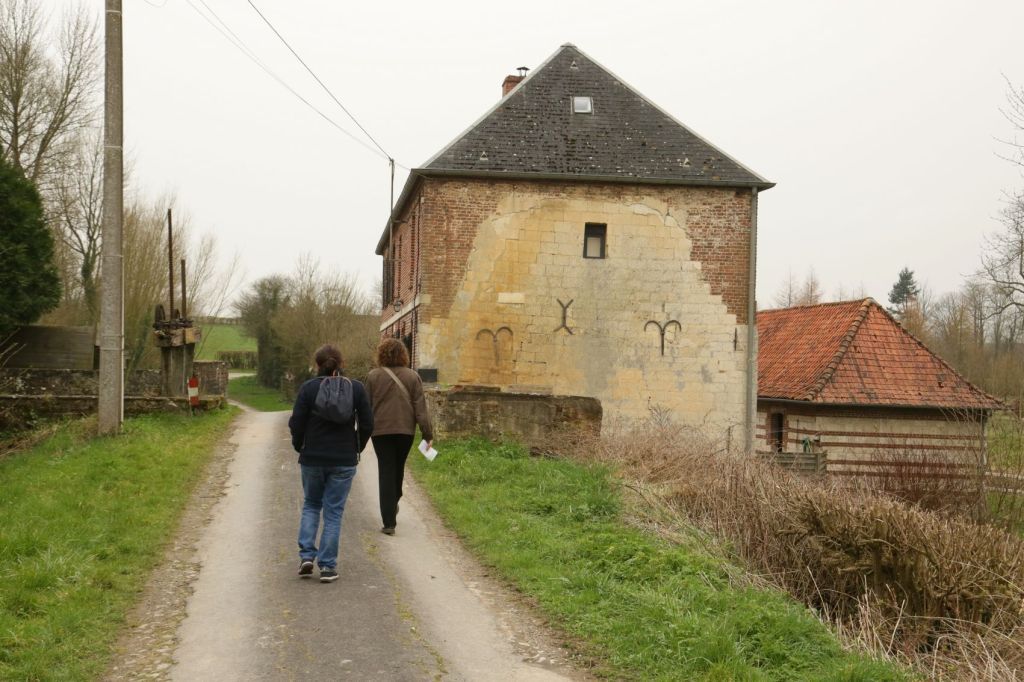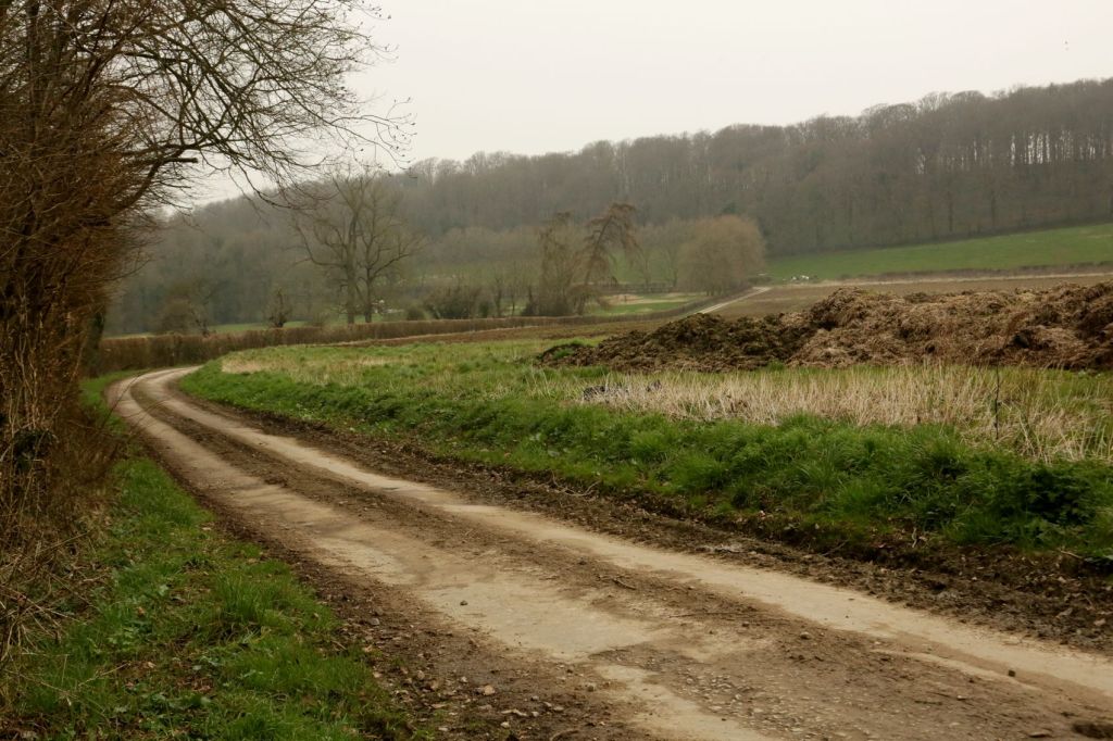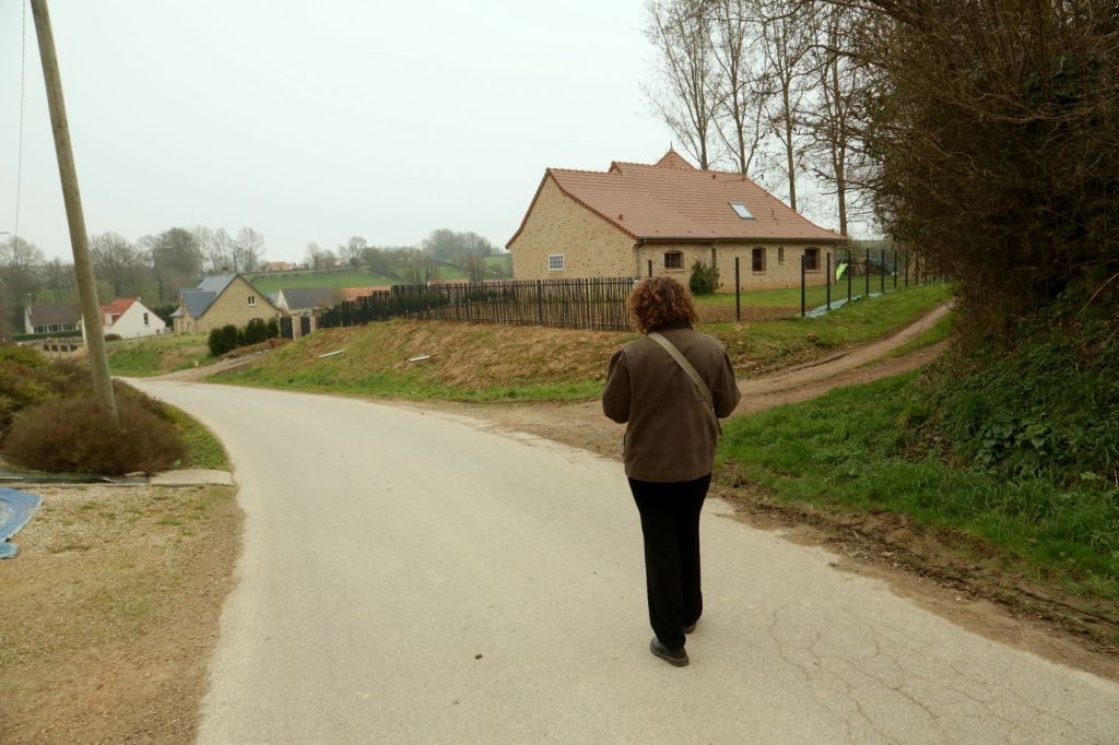 Vers 15h, arrivons sur Longhem ; là, il reconnaît le passage d’un chemin de randonnée, la via Francigena, m’explique que c’est une ancienne voie romaine qui part d’Angleterre et va jusqu’en Italie, une voie de pèlerinage, comme celle de Compostelle. Il est déjà venu par là se balader, empruntant le chemin, doit remonter vers Liettres, à moins que ce soit le château de Créminil ?