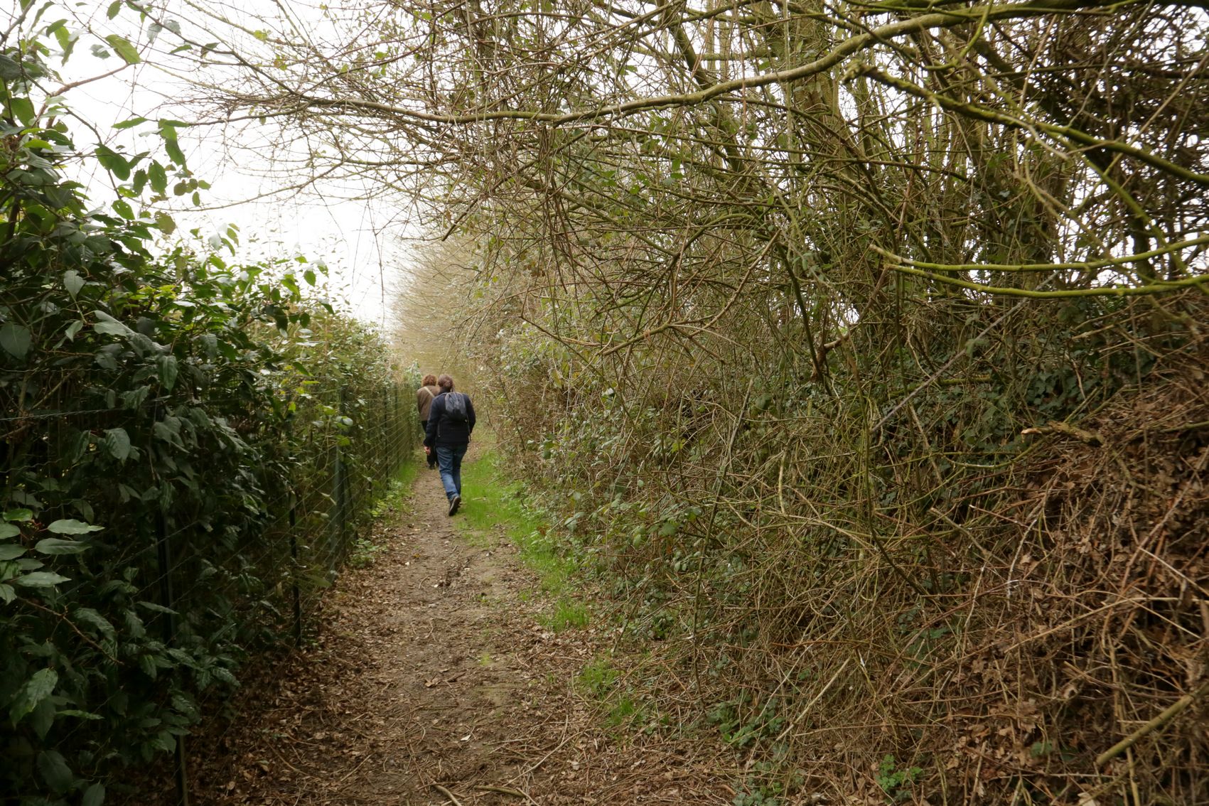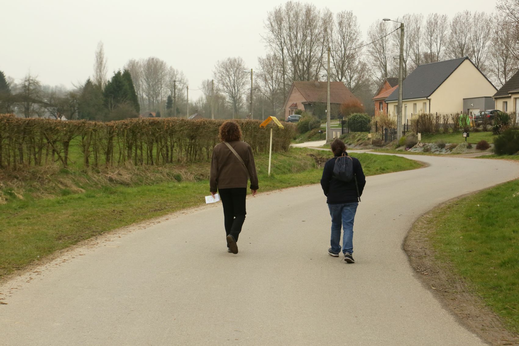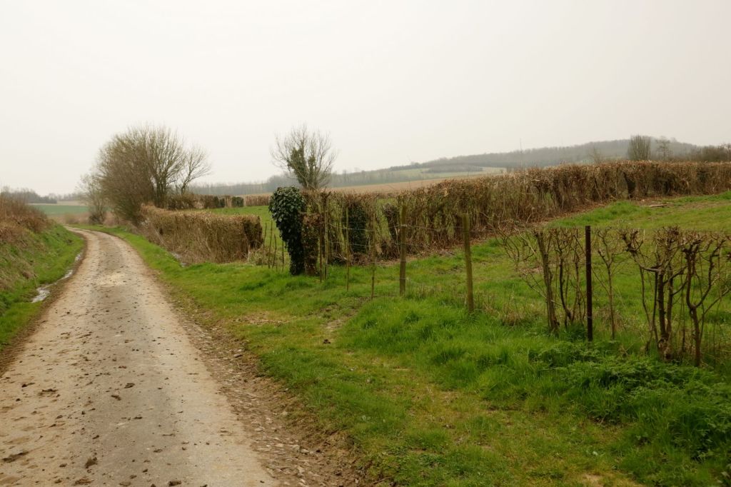 Vers 15h, arrivons sur Longhem ; là, il reconnaît le passage d’un chemin de randonnée, la via Francigena, m’explique que c’est une ancienne voie romaine qui part d’Angleterre et va jusqu’en Italie, une voie de pèlerinage, comme celle de Compostelle. Il est déjà venu par là se balader, empruntant le chemin, doit remonter vers Liettres, à moins que ce soit le château de Créminil ?