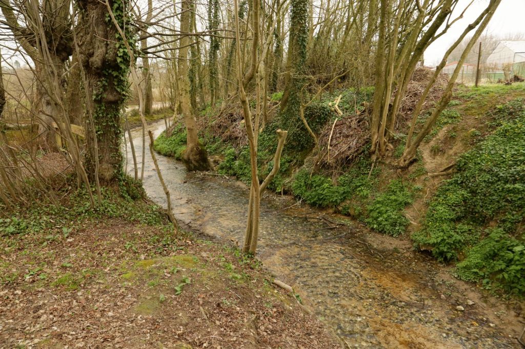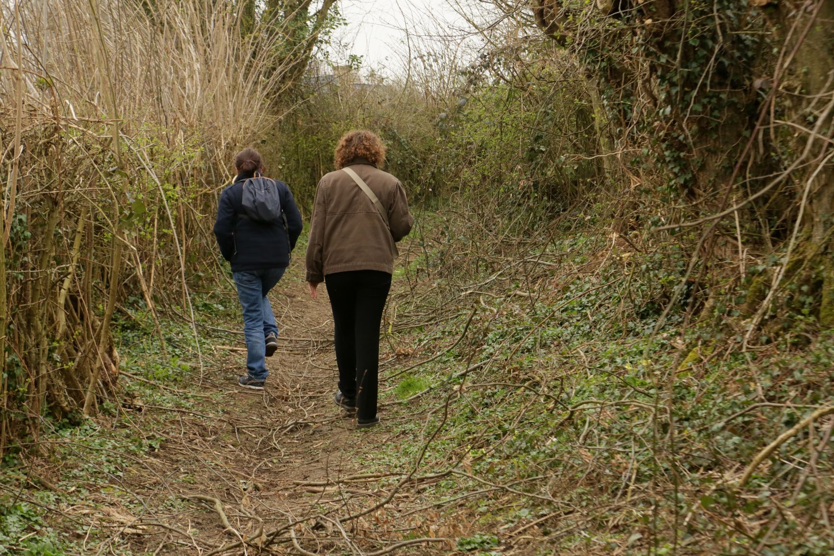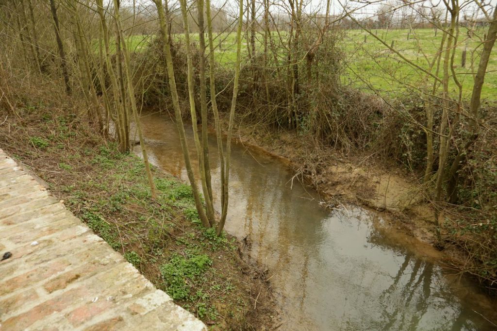 Descendre au niveau du pont caché de la voie Francigena, suivre le fil de l’eau vers l’amont.