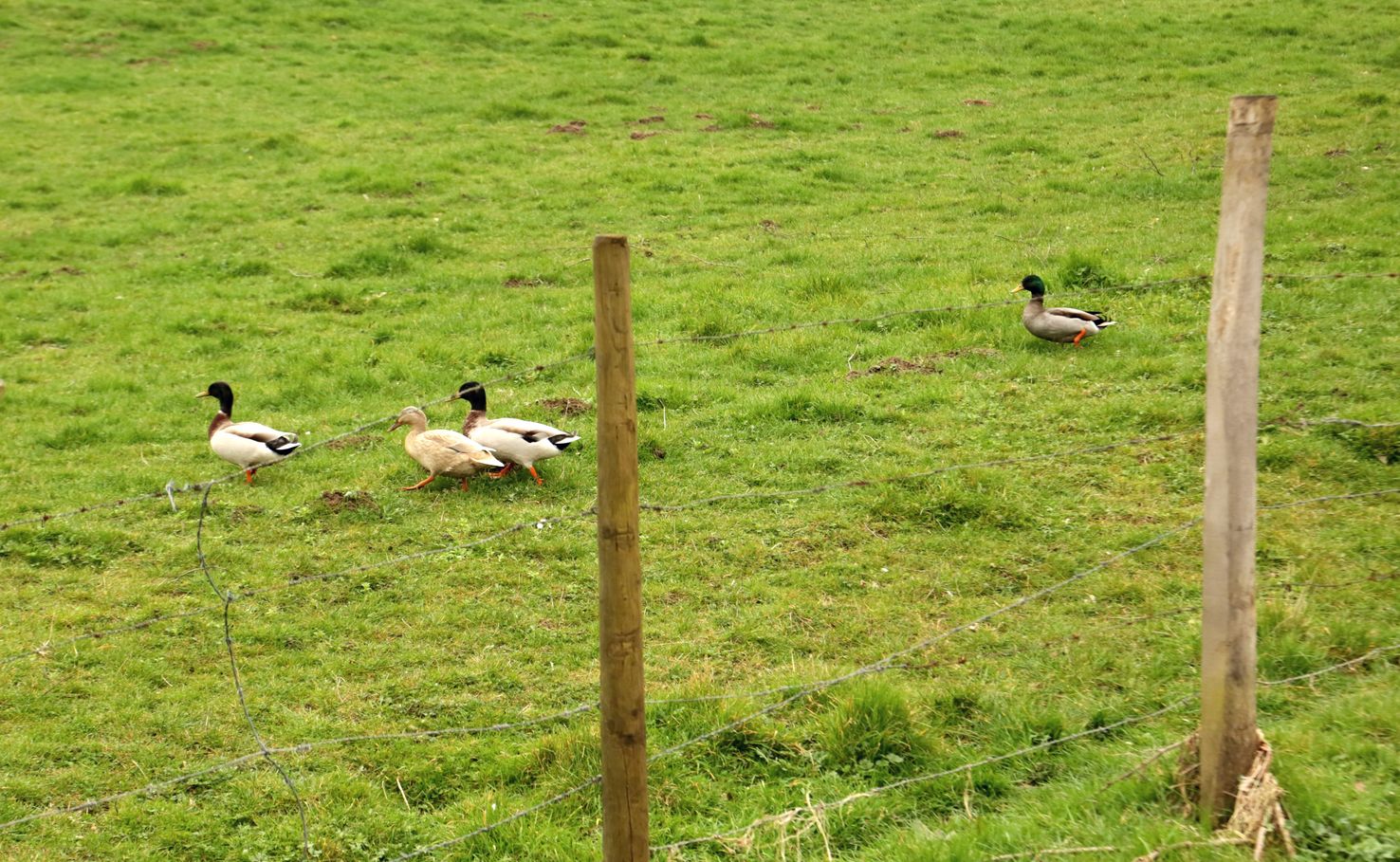 Je retrouve le trio de canards de barbarie ; sont toujours au même endroit, ils doivent avoir élu domicile ici, la berge est piétinée, des plumes parsèment le sol… A peine dérangés, juste gardé leur distance, calés au pied de l’autre berge.