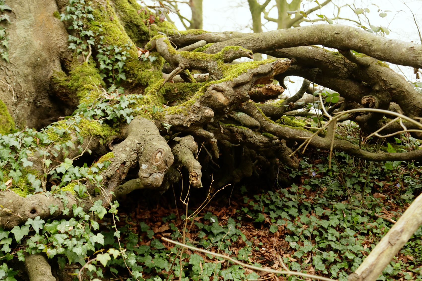 L’arbre est saisissant, jusqu’à son houppier qui est envahi de lierre, nous laisse imaginer une cabane là-haut ; enfant, on se dit qu’on aurait aimé…