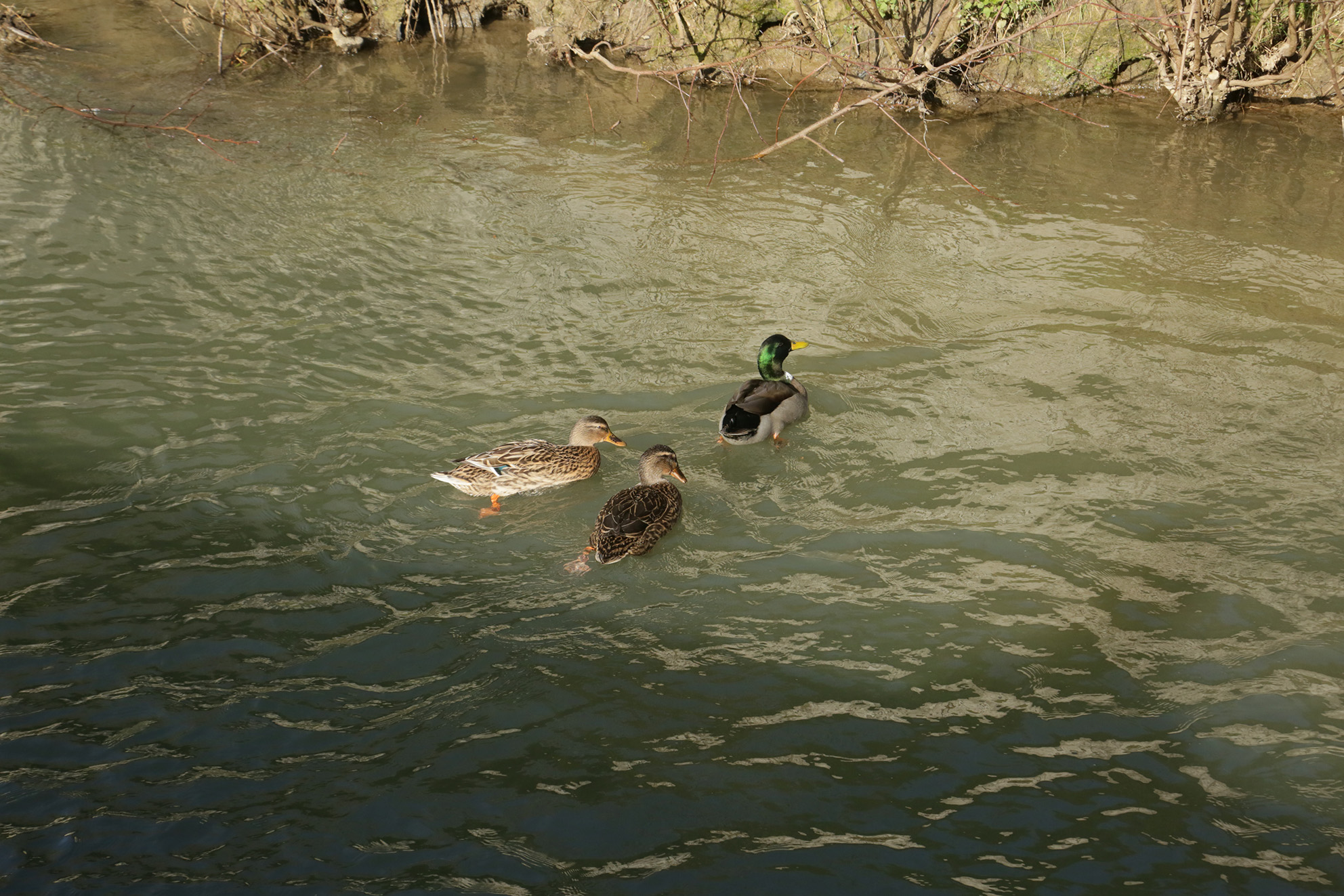 Je retrouve le trio de canards de barbarie ; sont toujours au même endroit, ils doivent avoir élu domicile ici, la berge est piétinée, des plumes parsèment le sol… A peine dérangés, juste gardé leur distance, calés au pied de l’autre berge.
