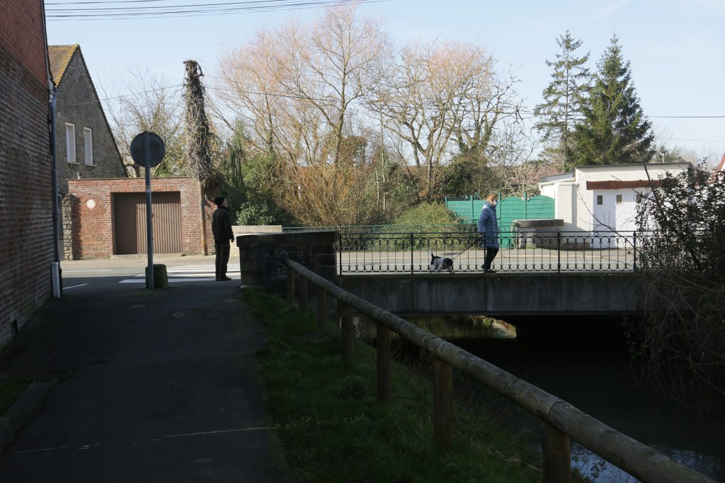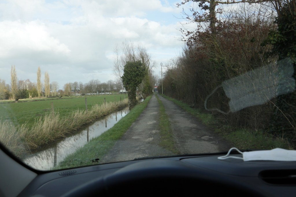 En passant à Longhem, près du pont, une forme au sol, nous fait penser à un animal écrasé…